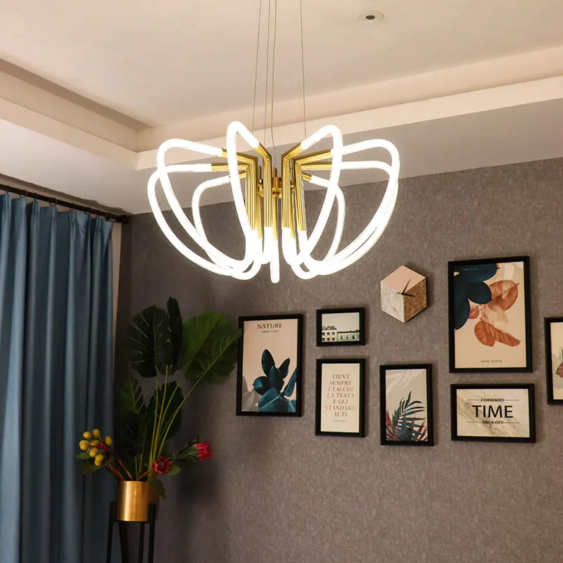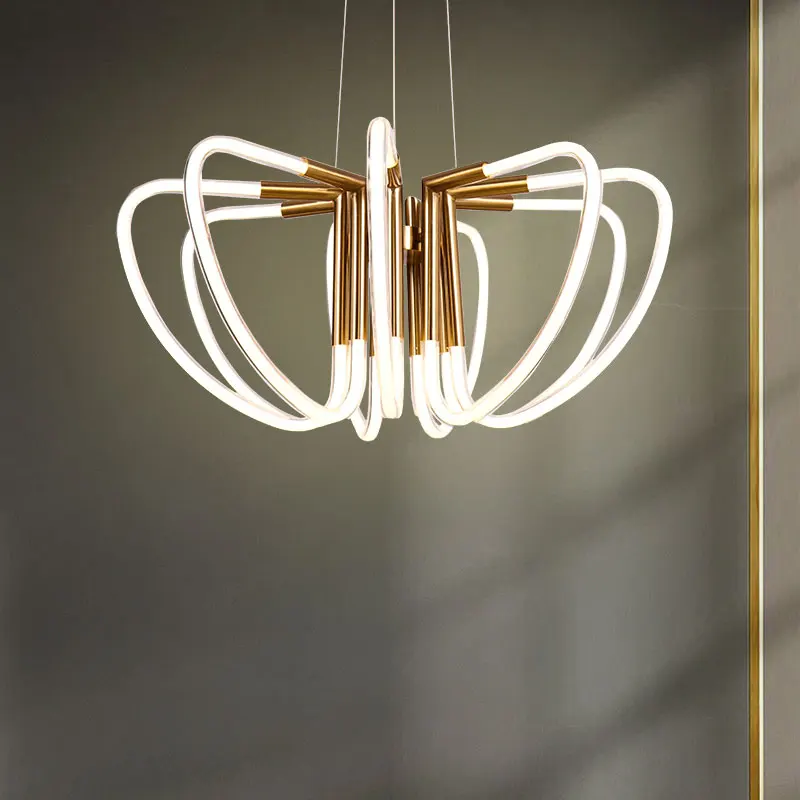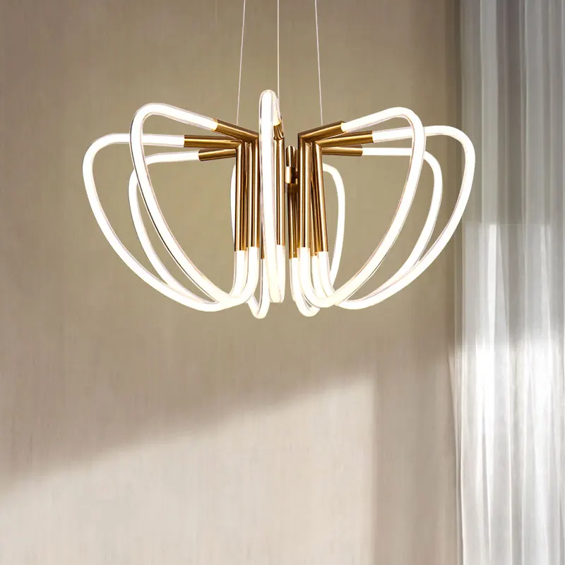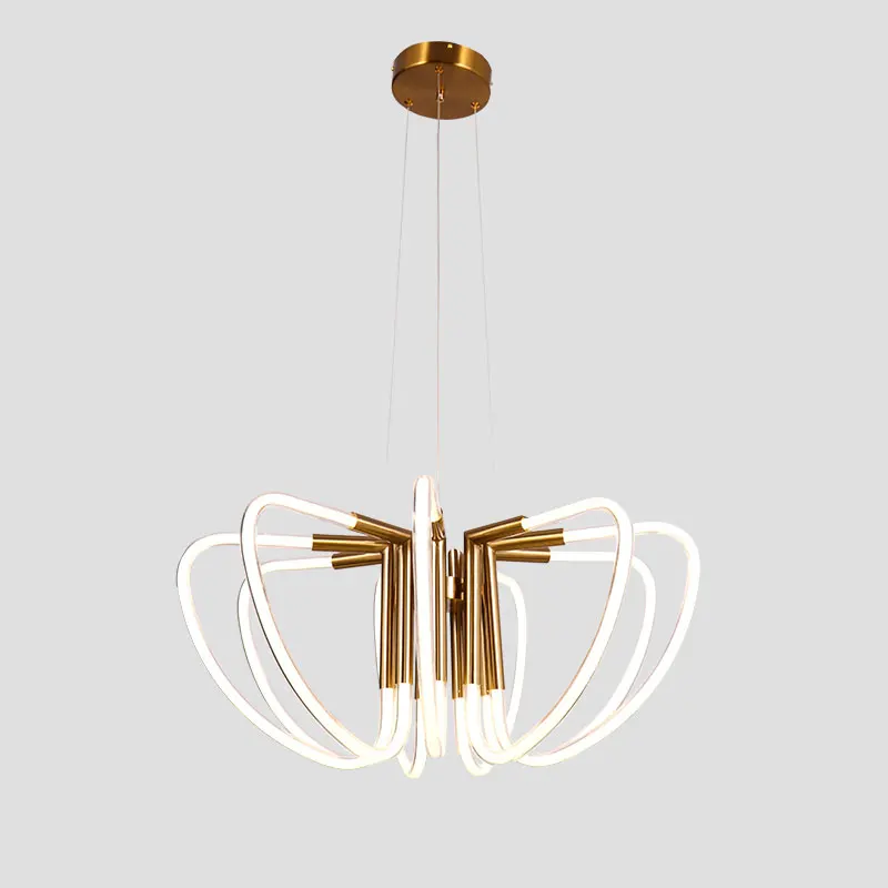 2022 Hot Sale Art Nordic Linear Gold Metal Kitchen Led Pendant Light Modern