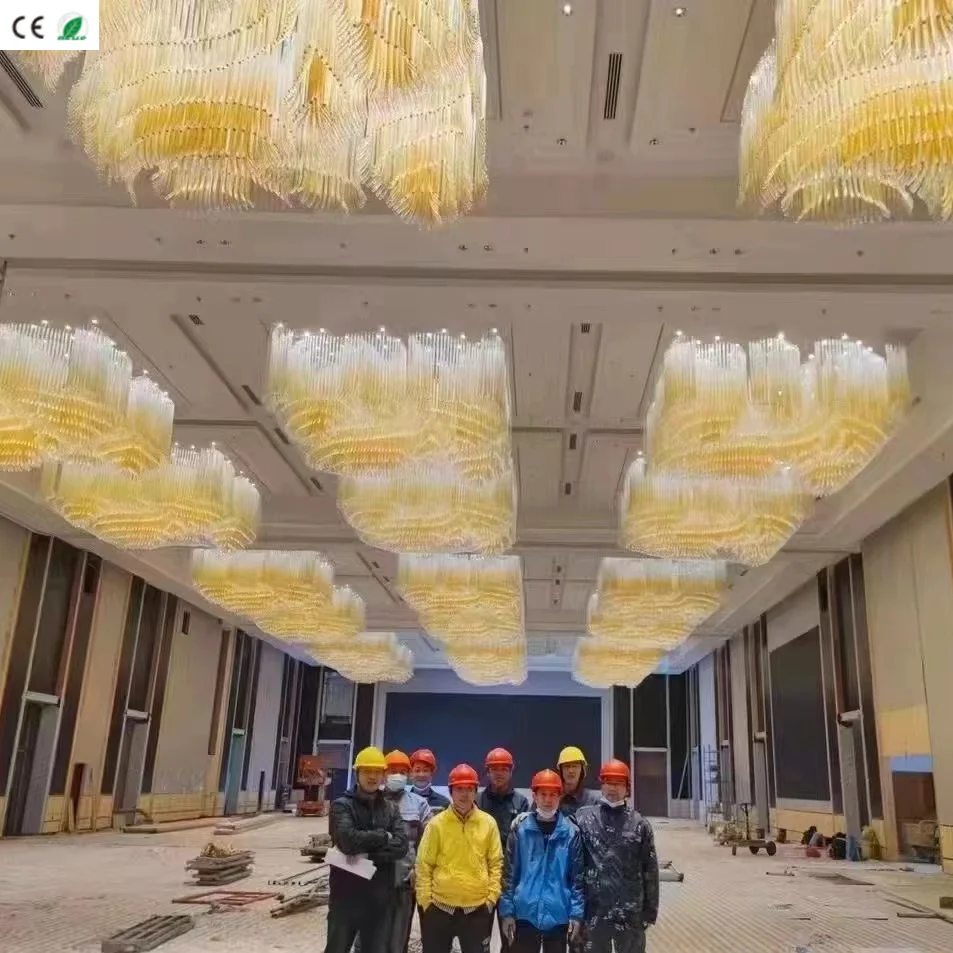 Wedding Hall Chandelier Hotel Hanging Pendant Light Customized Amber Crystal Chandelier Lighting for Lobby