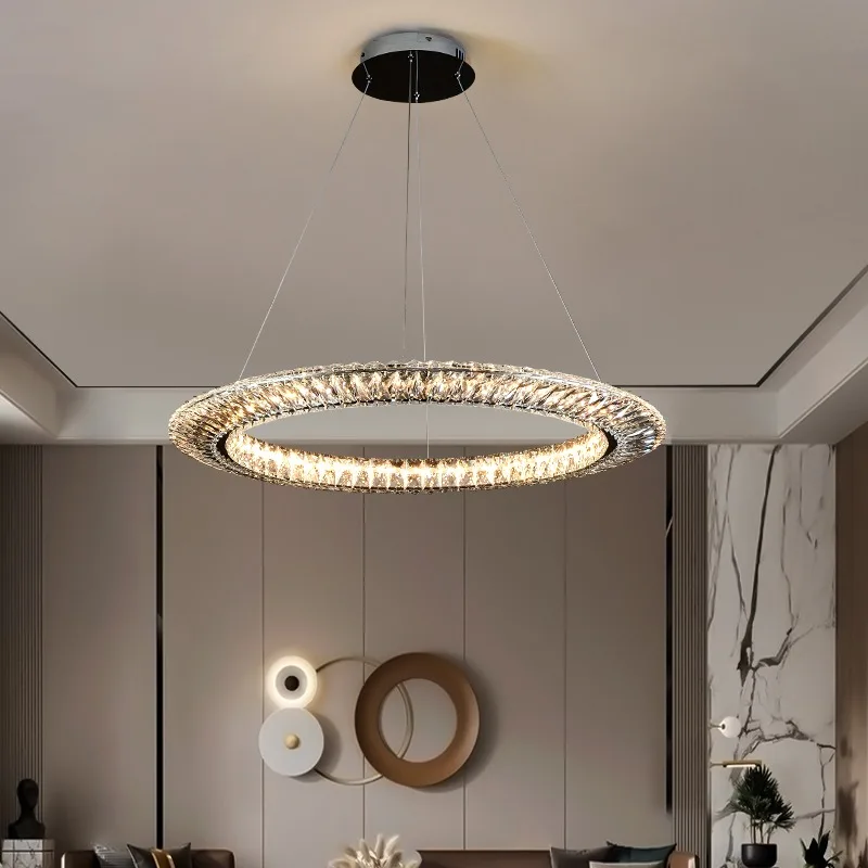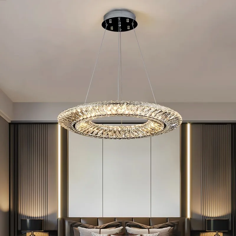 Light Luxury Crystal Lamp Ring Chandelier for Living Room Dining Room and Bedroom Simple Design with Remote Control