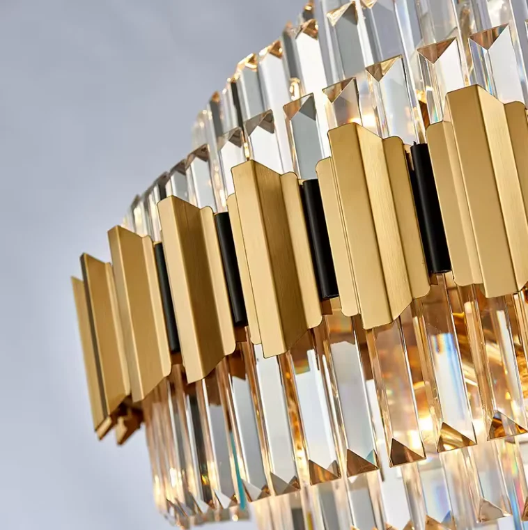 Brushed Gold Hanging Lamp Modern Gold K9 Crystal Chandelier Pendant Light for Indoor Decoration