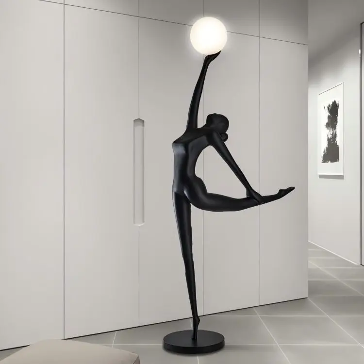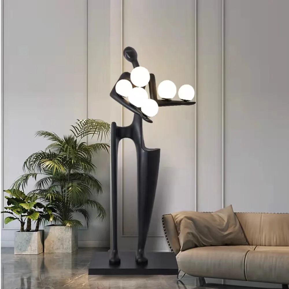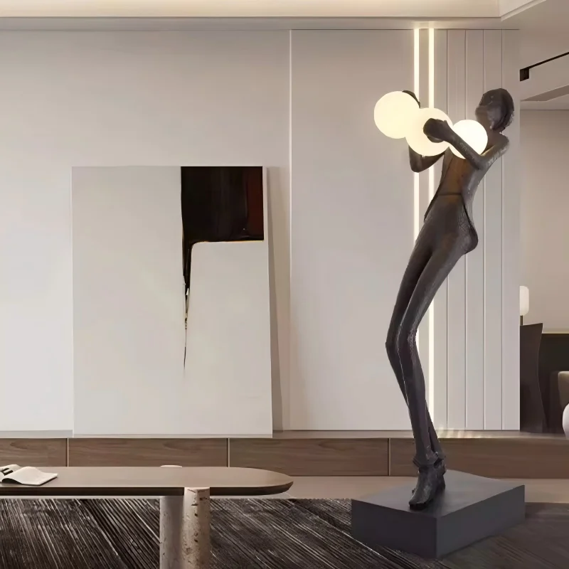 Nordic Modern Luxury LED Floor Lamp Humanoid Figure Sculpture with Red Glass Metal for Hotel & Living Room Art Decoration