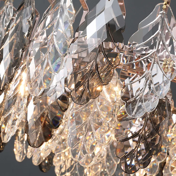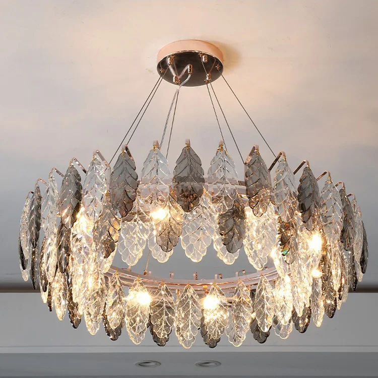 Nordic Leaf Round LED Pendant Lighting Modern Lamp for Home Living Room Ceiling Crystal Chandelier Bedroom Decor Crystal Light