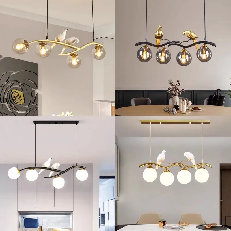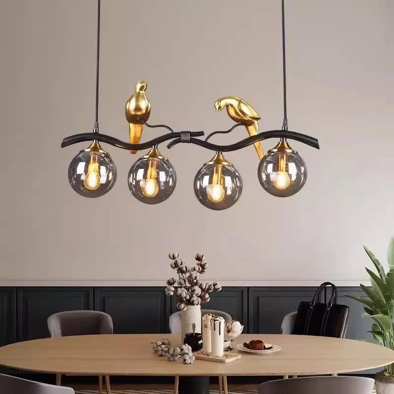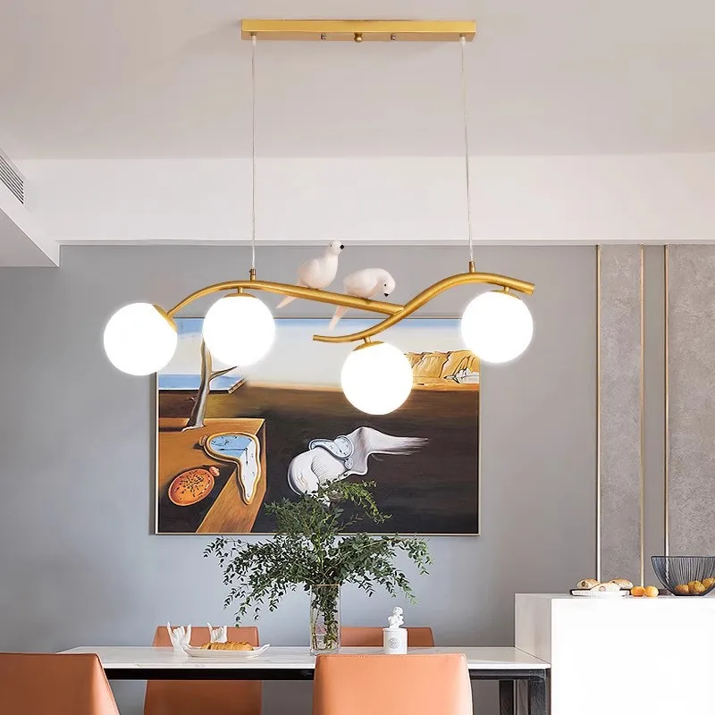 Modern Nordic Iron Gold Glass Chandelier Two Birds New Fashion Design E27 Hanging Lamp Living Room Adjustable Height Warm
