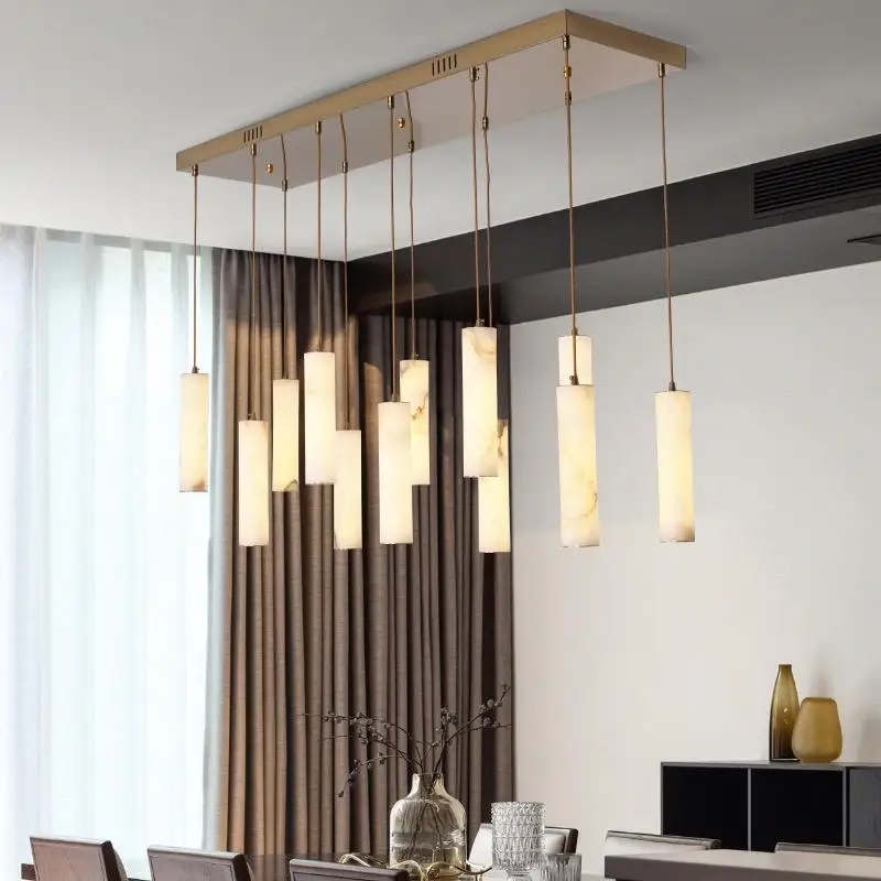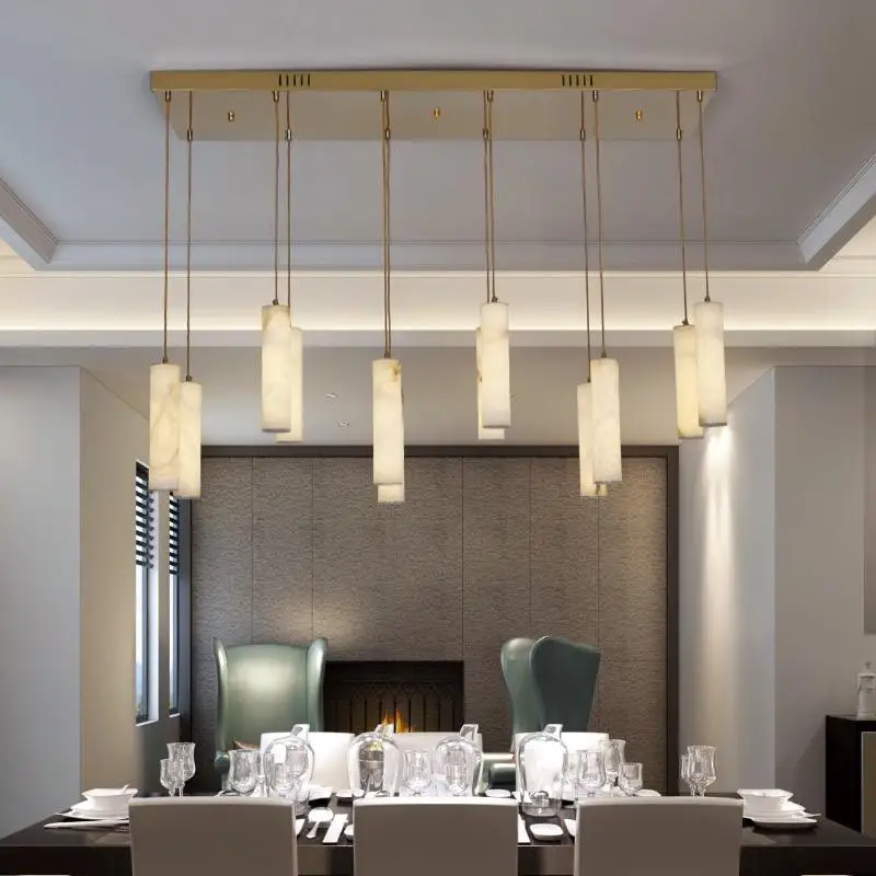 Creative Designer Marble Chandelier Hotel Dining Room Long Strip Alabaster Pendant Lights Kitchen Spiral Stairwell