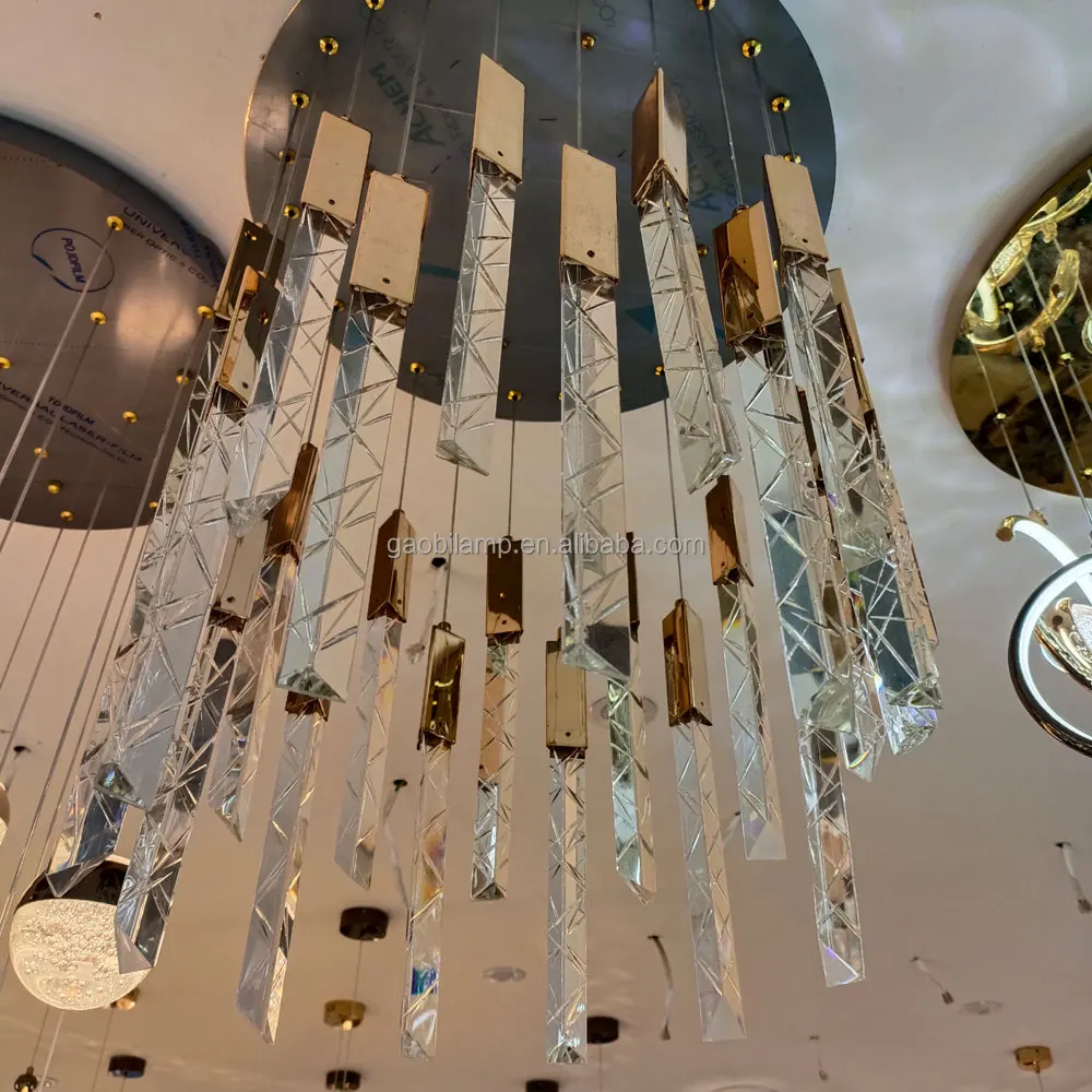 Zeal Lighting Hotel Lobby Hall Decorative Large Hanging Light Customized Long Gold Crystal Elegant Chandelier