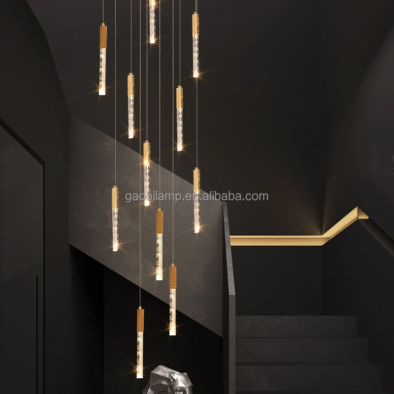 Zeal Lighting Long Stairwell Hanging Pendant Light Staircase Villa Duplex Stair High Ceiling Crystal Chandelier