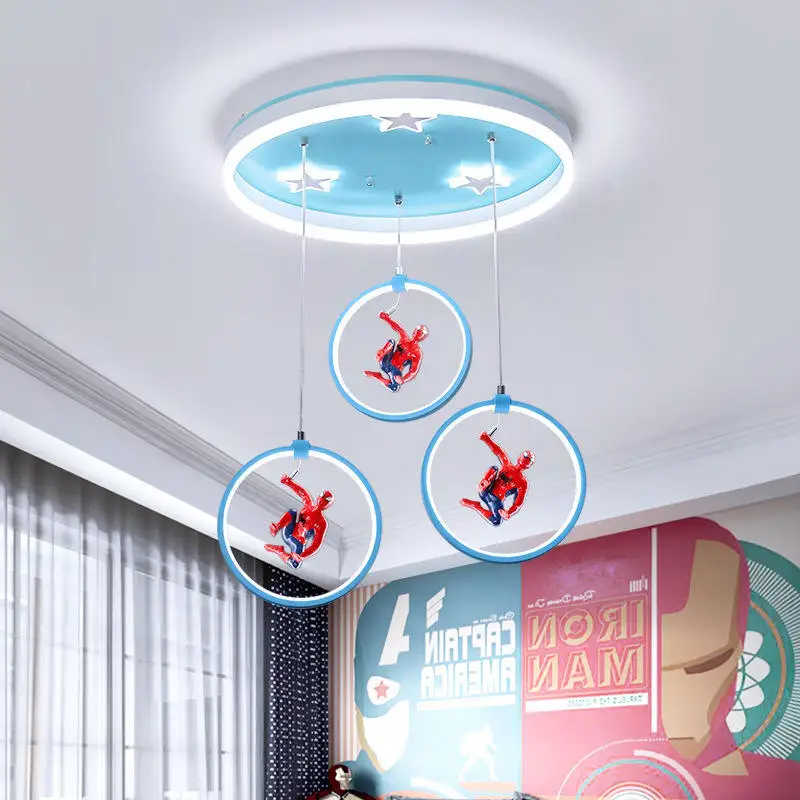 Modern Creative Eye protection Led Cartoon SpiderMan Stars Shape Modern Led Ceiling Light Kids Lamps
