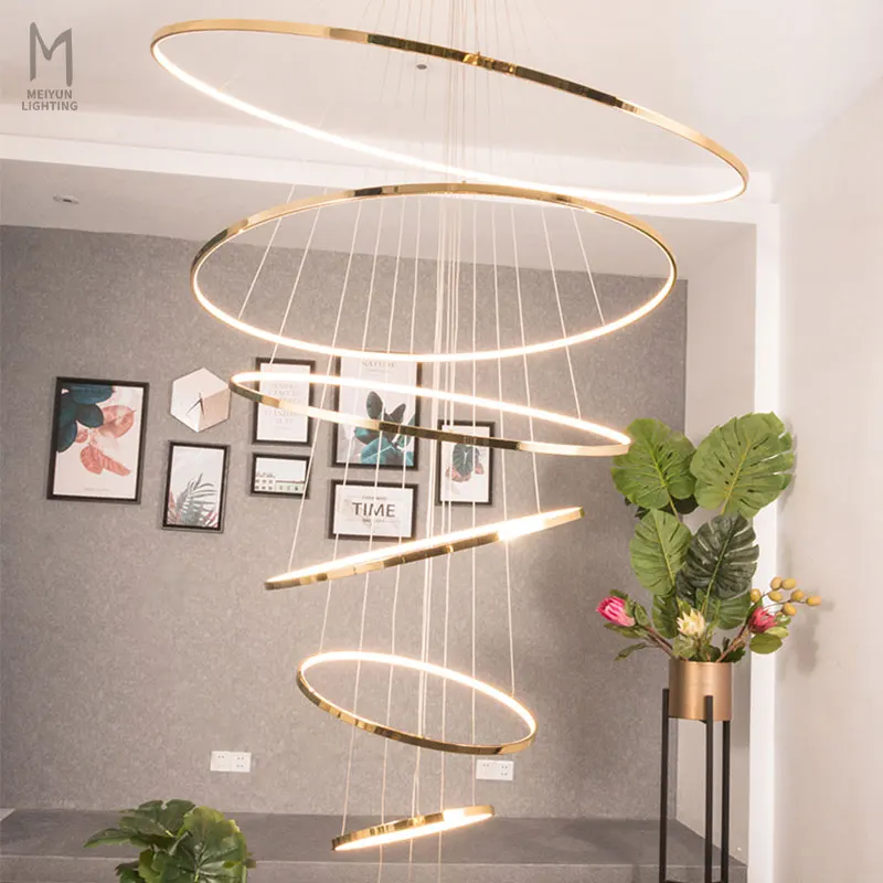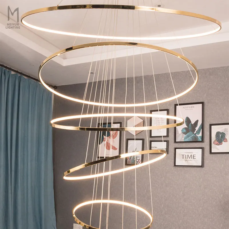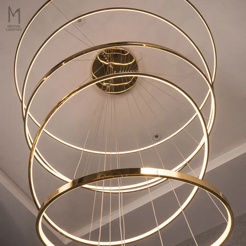 Hot Sale Modern Hotel Loft Gold Aluminum Multi Rings LED Pendant Light for Living Room