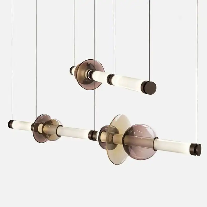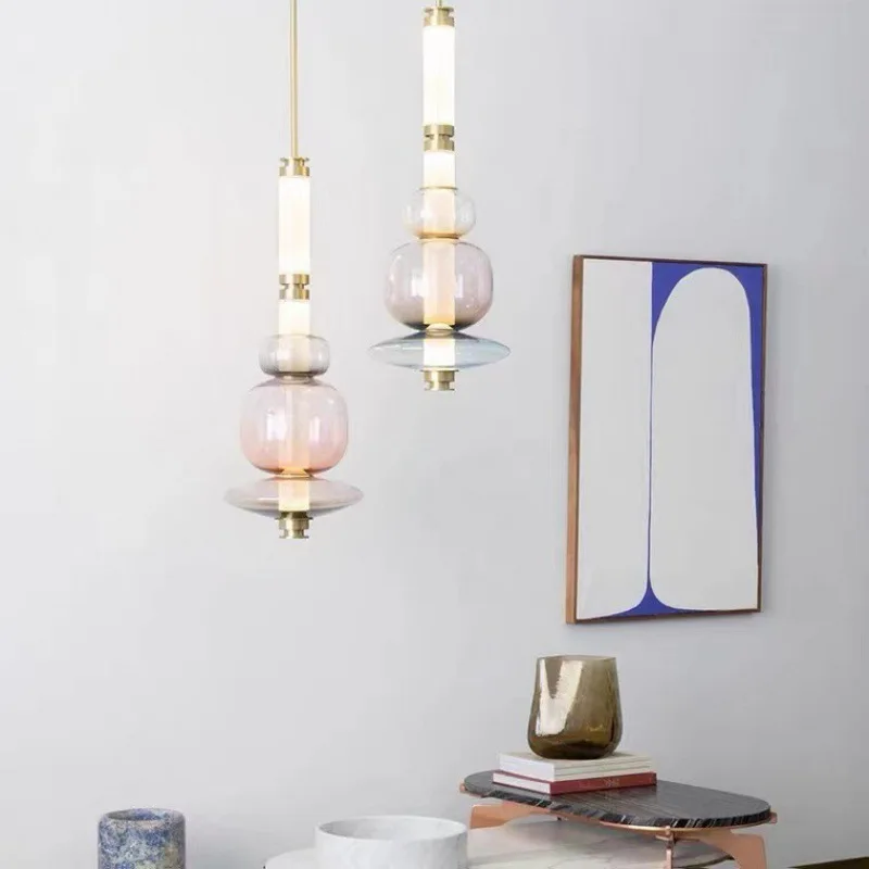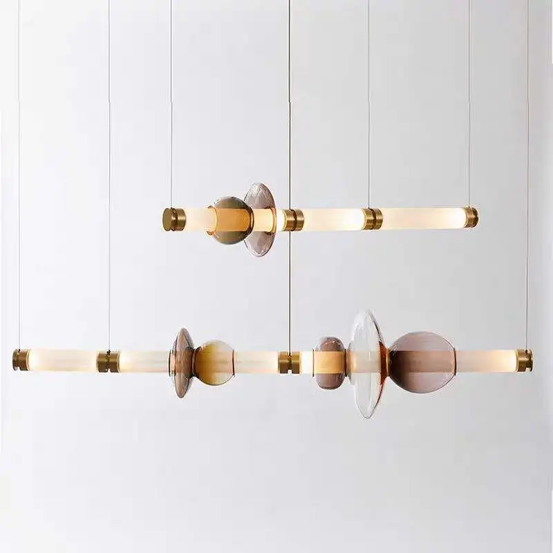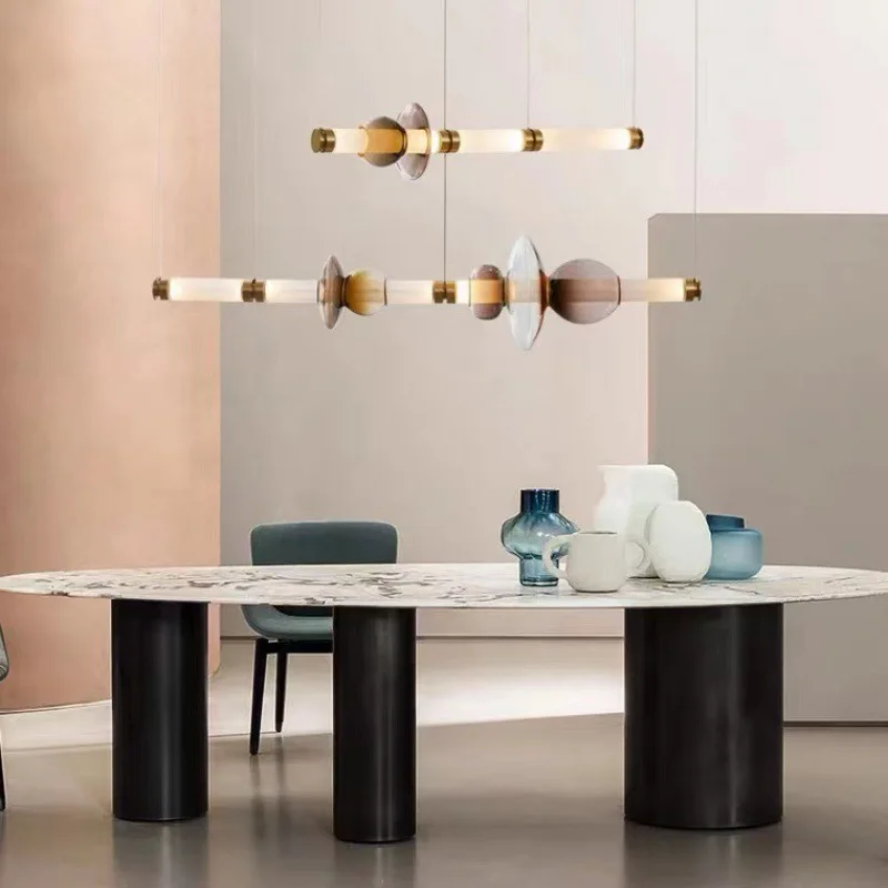 Nordic Modern Long Colored Glass LED Pendant Light Adjustable Height Dimmable Dining Table Bar Space Creative Chandelier