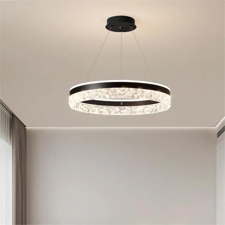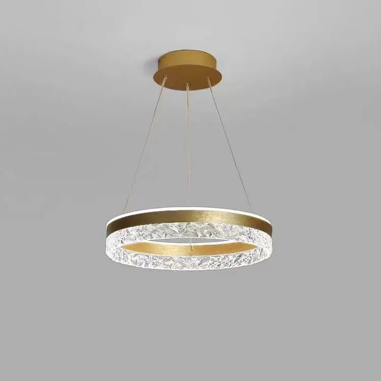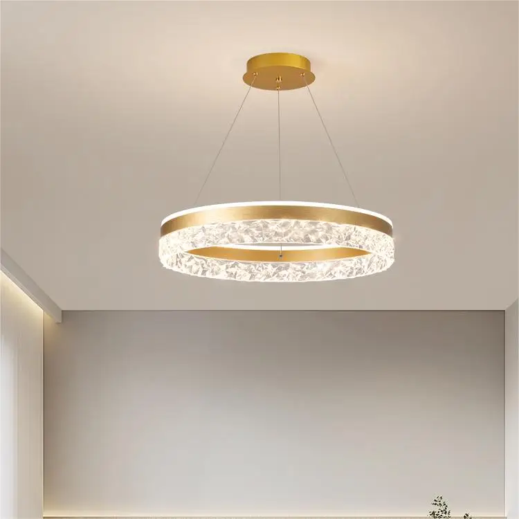Luxury Hanging Circle Chandelier Led Gold Ring Crystal Pendant Light for Living Room
