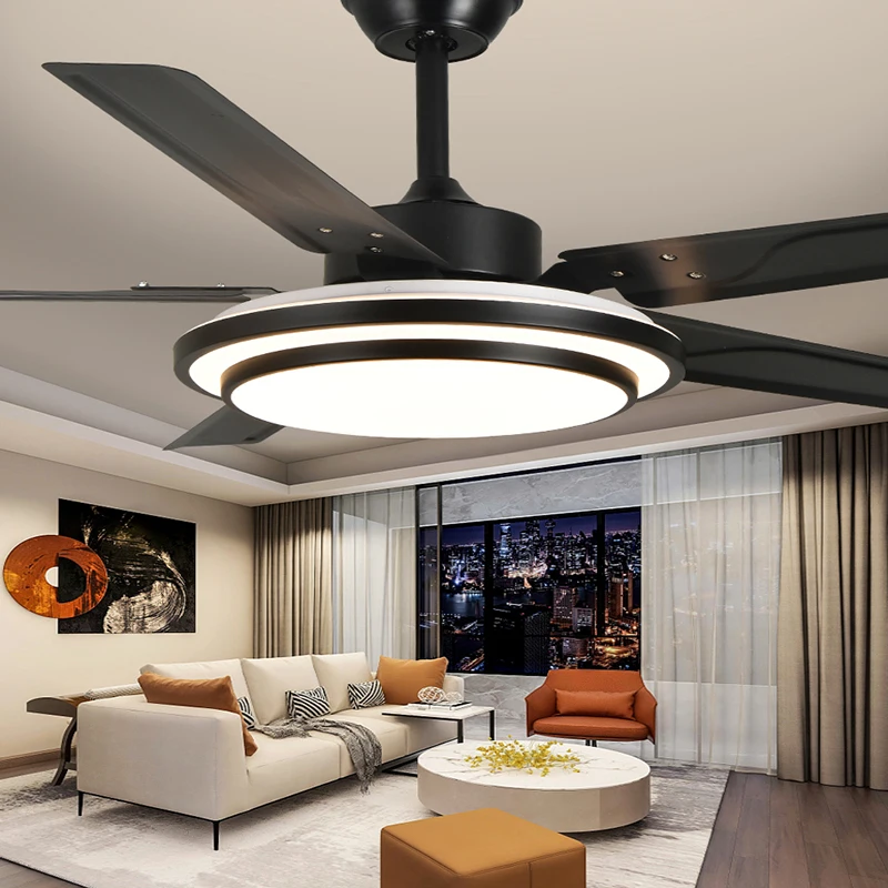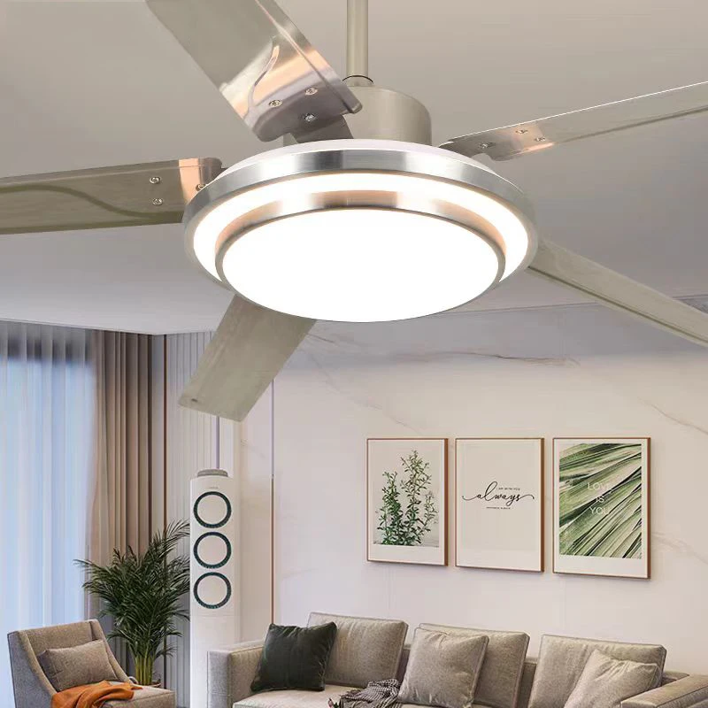 American Style Iron Blades LED Ceiling Fan with Remote Control 30W Large Light Quiet Motor Indoor Ceiling Fan