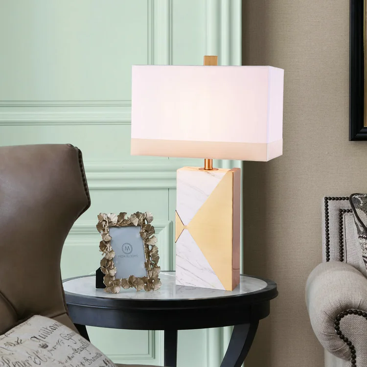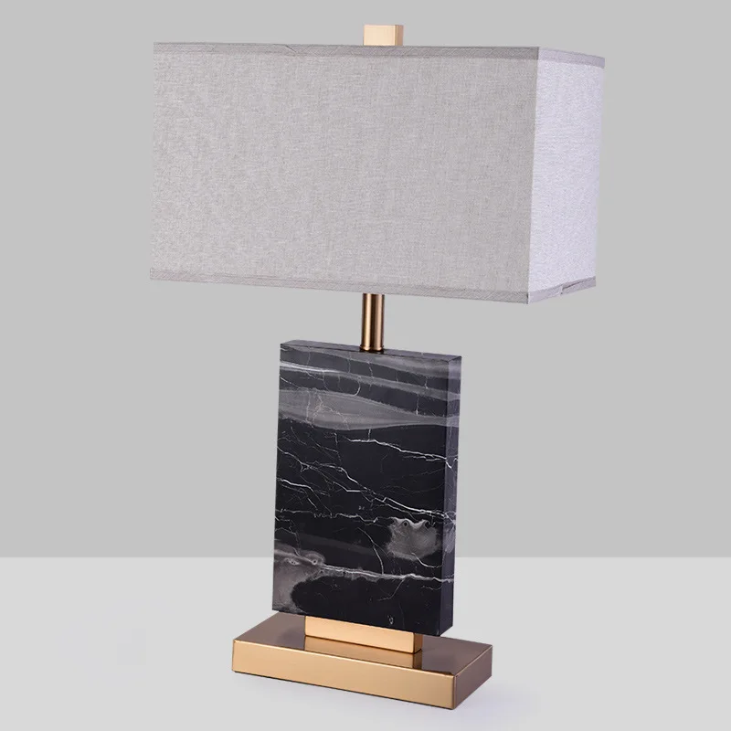 Originality Bedside Hotel Desk Office Fabric Shades Marble Base Table Lamps for Reading Room or Bedroom