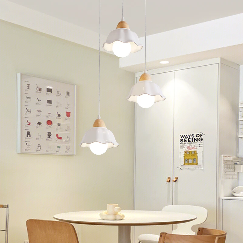 Wabi-sabi Style Solid Wood Three-Head Pendant Lamp Petal White Adjustable Height Bedside Light for Bedroom Dining Room Bar