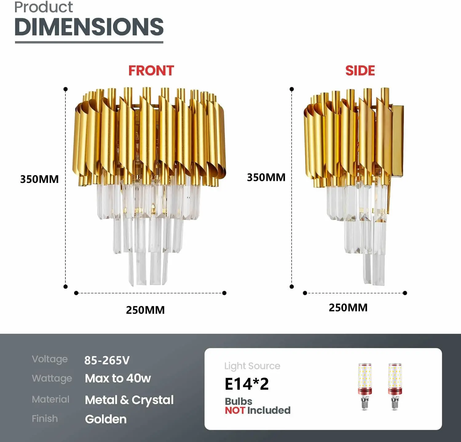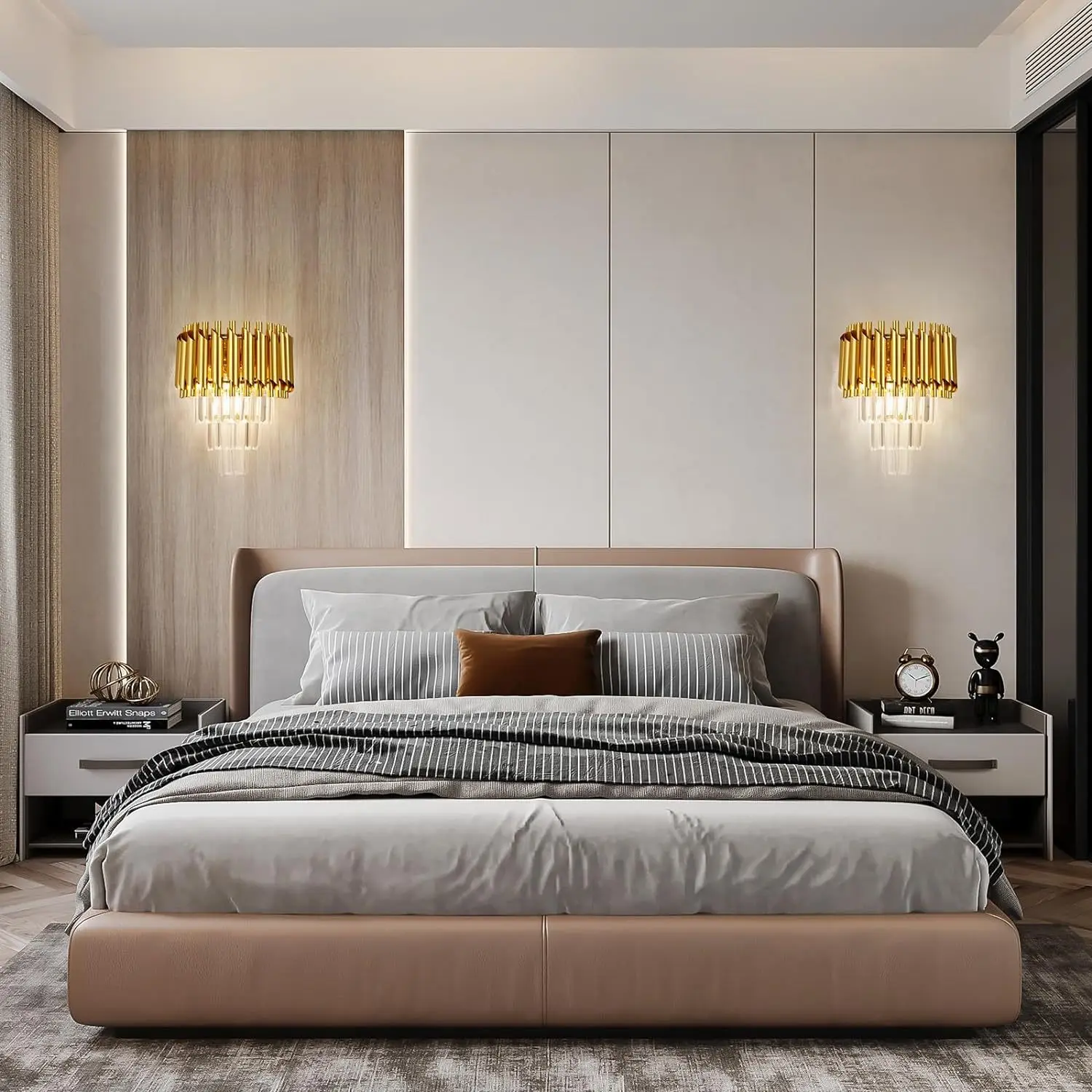 Interior Decoration Wall Sconce Led Modern Luxury Gold Glass Crystal Bedside Wall Lamp
