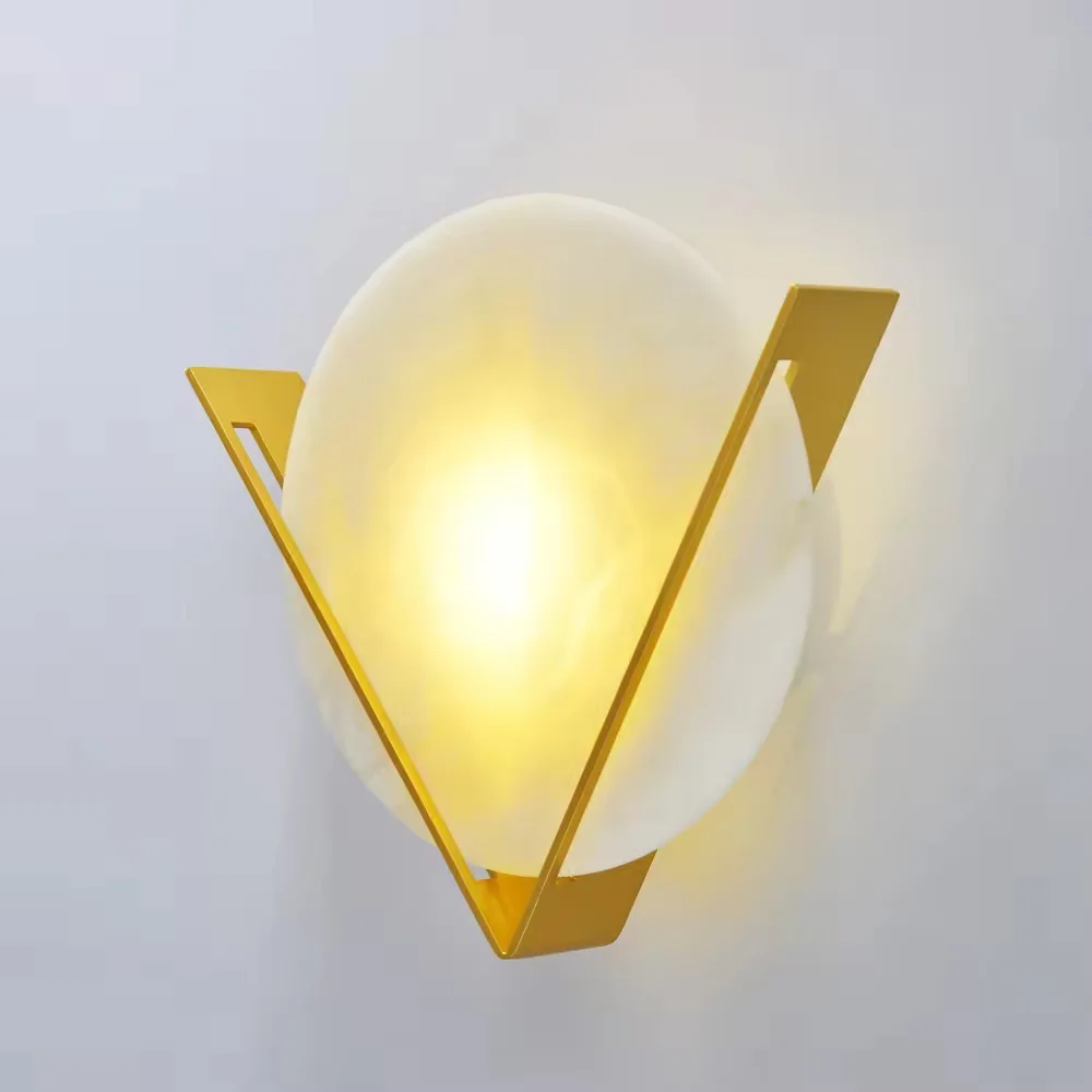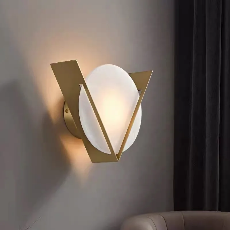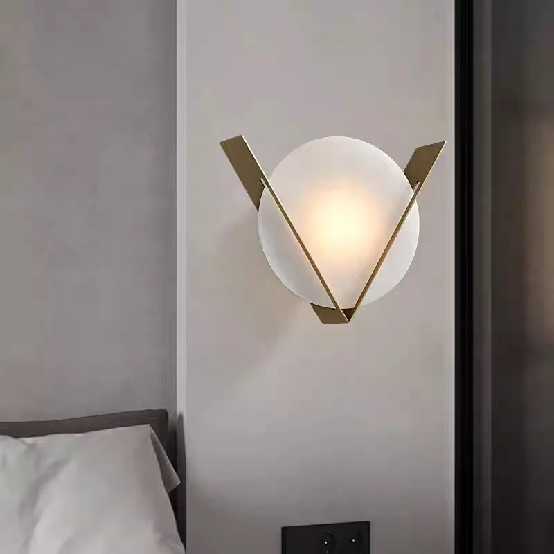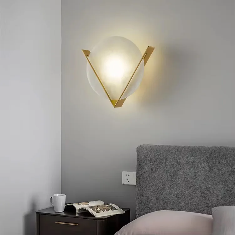 Nordic Simple Living Room Wall Lamp Spanish Natural Marble with Copper Material for Bedroom Bedside Background Wall
