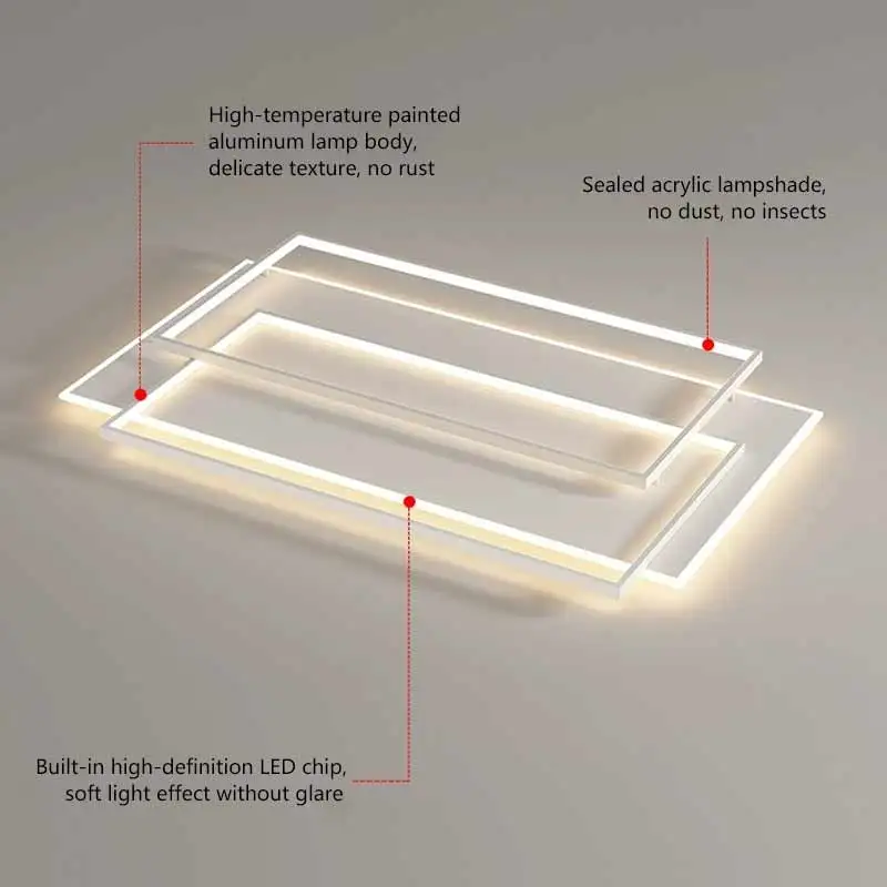 Ceiling Light Elegant Bedroom Ceiling Lamp Minimalist Beautiful Rectangular Living Room Home Black and White LED Ceiling Light