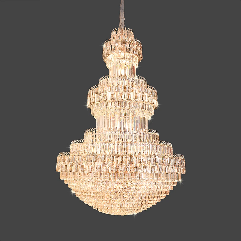 Zeal Lighting Hotel Lobby Hall Decorative Large Hanging Light Customized Long Gold Crystal Elegant Chandelier