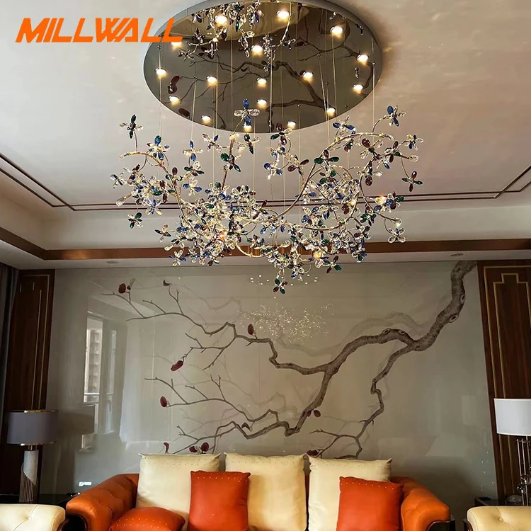 Hotel Villa Decoration Color Dining Room Modern Led Crystal Glass Tree Branch Chandelier