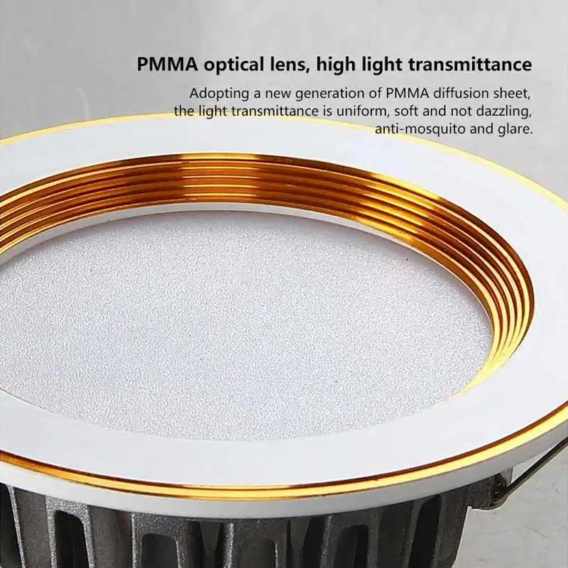 AC220V Modern Indoor LED Downlight Recessed Round Gold Ceiling Light 5W/9W/12W/18W White/Warm White Aluminum Ultra Thin