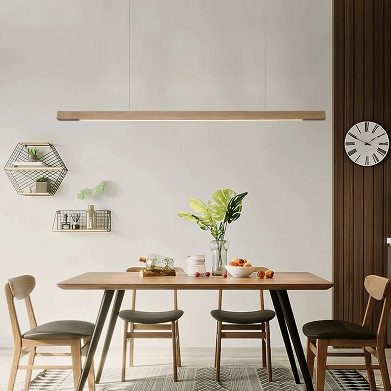 Nordic Style High Quality Wooden Metal Pendant Light Log Color Walnut Chandelier with Remote Control Mode