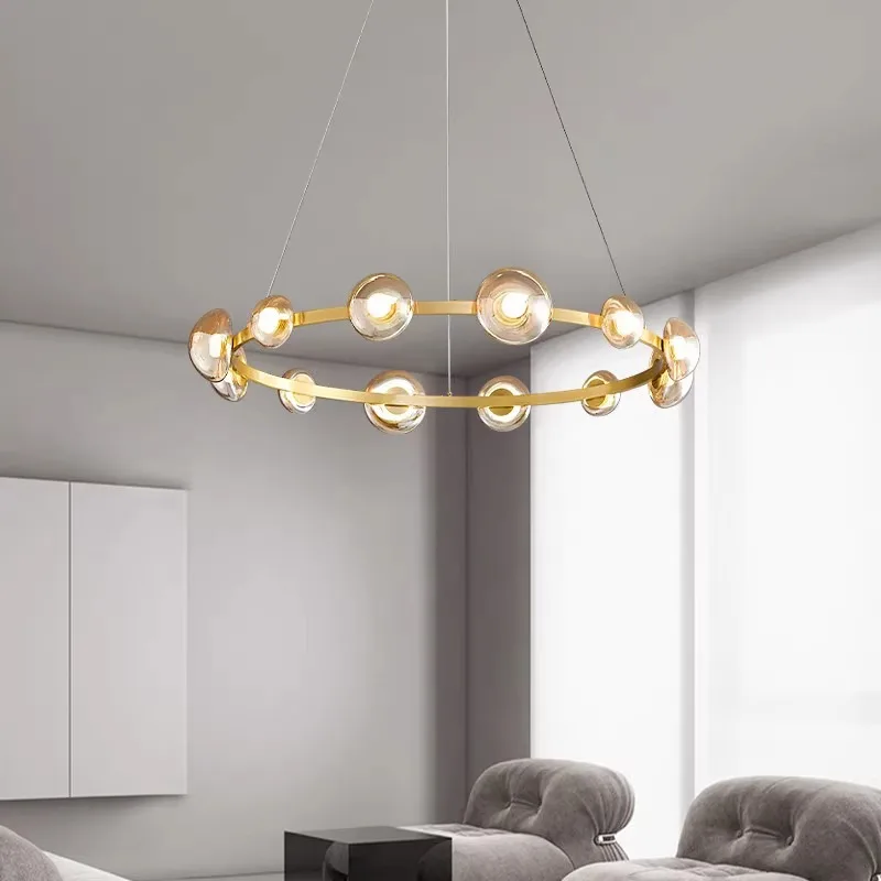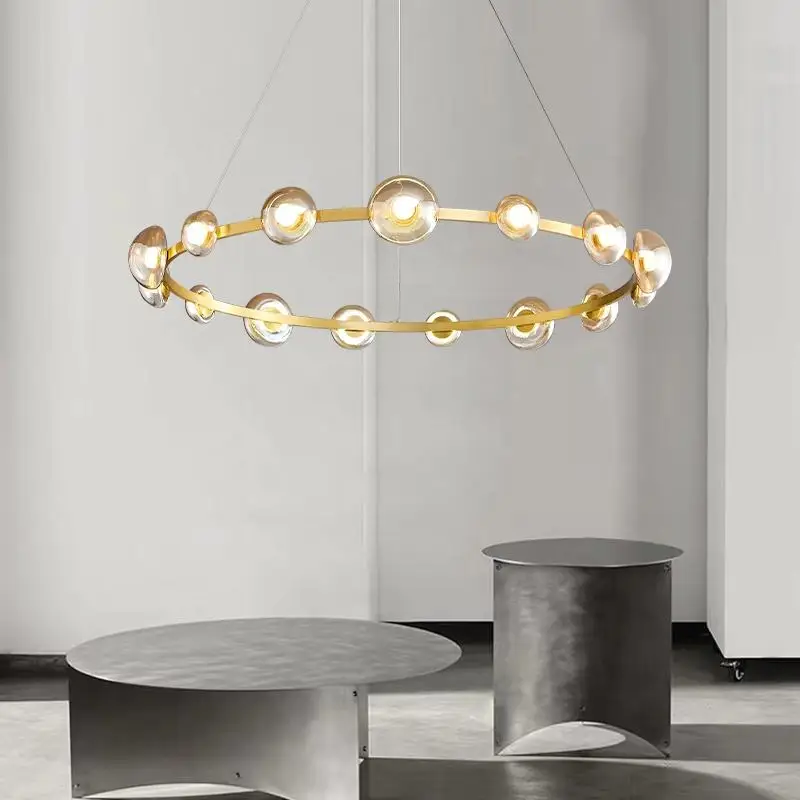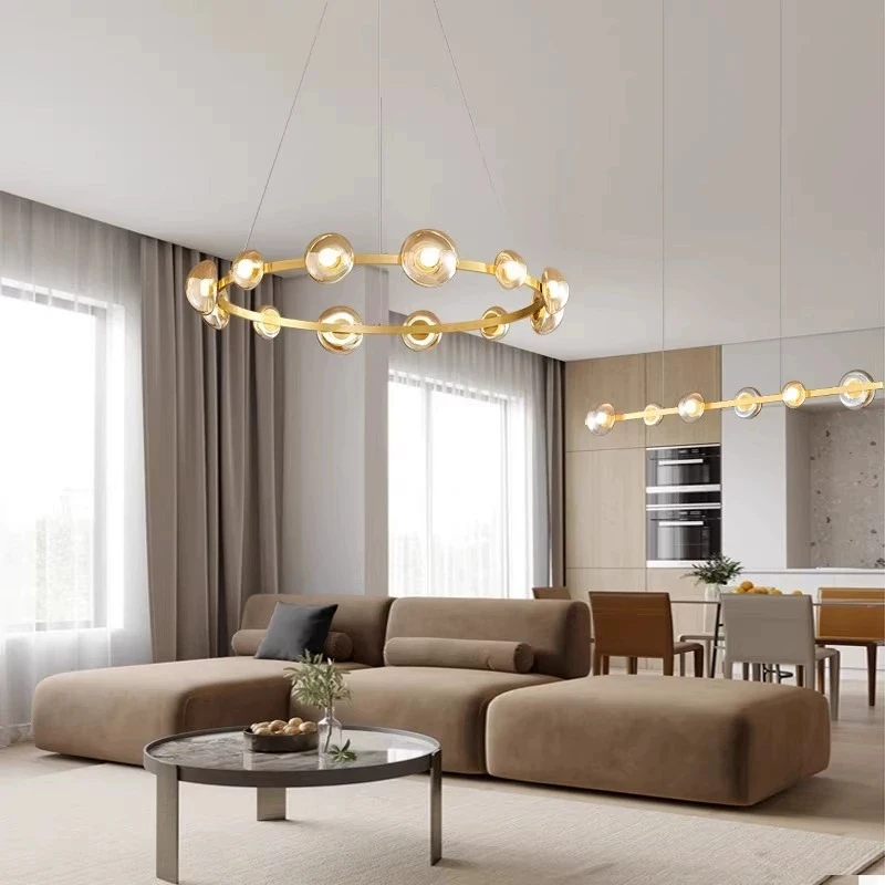 Nordic Italian Minimalist Gold Ring Pendant Light LED Adjustable Height Dimmable-Middle for Office Restaurant Living Dining Room