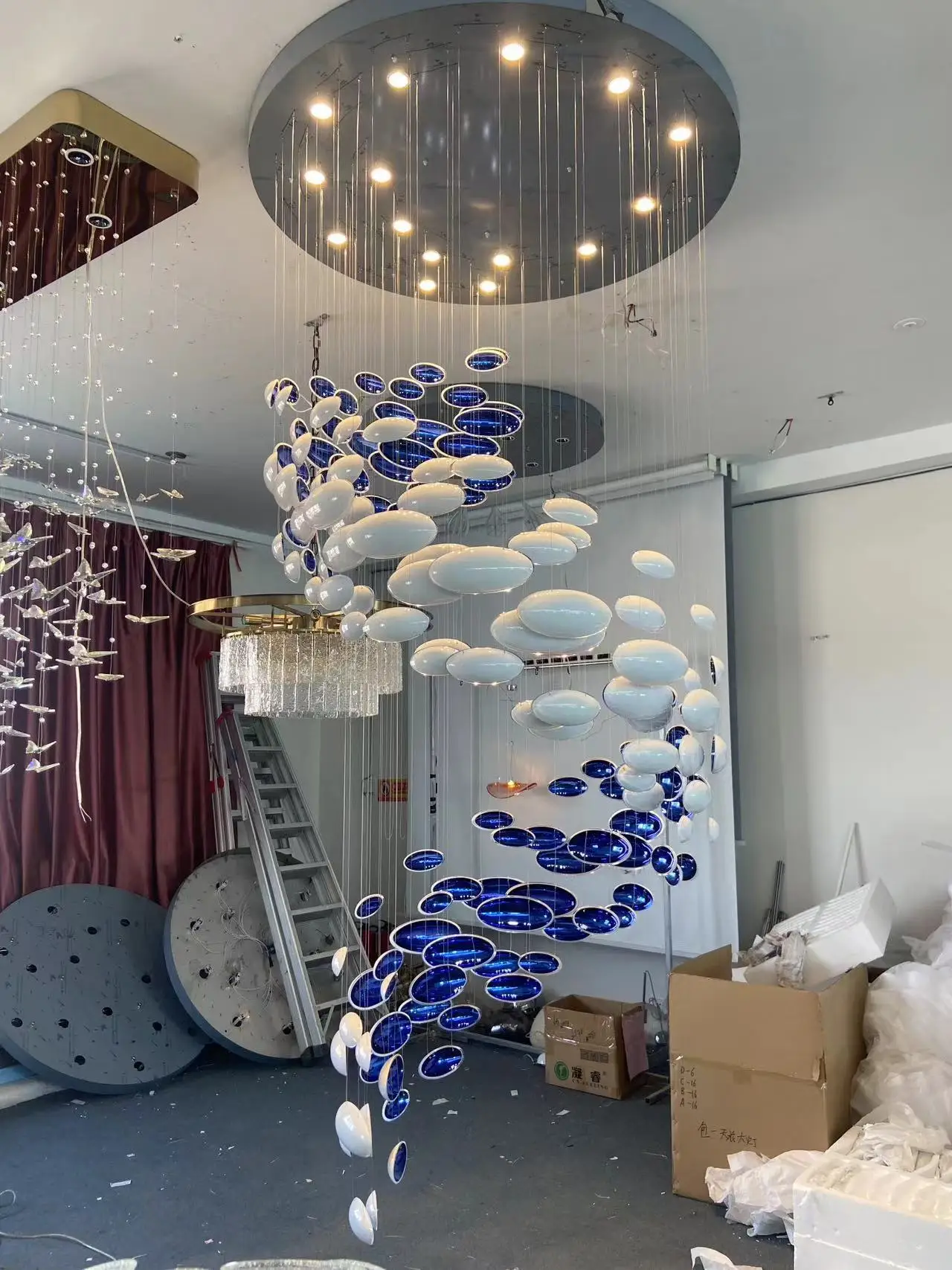 Zeal Lighting Long Stairwell Hanging Pendant Light Staircase Villa Duplex Stair High Ceiling Crystal Chandelier