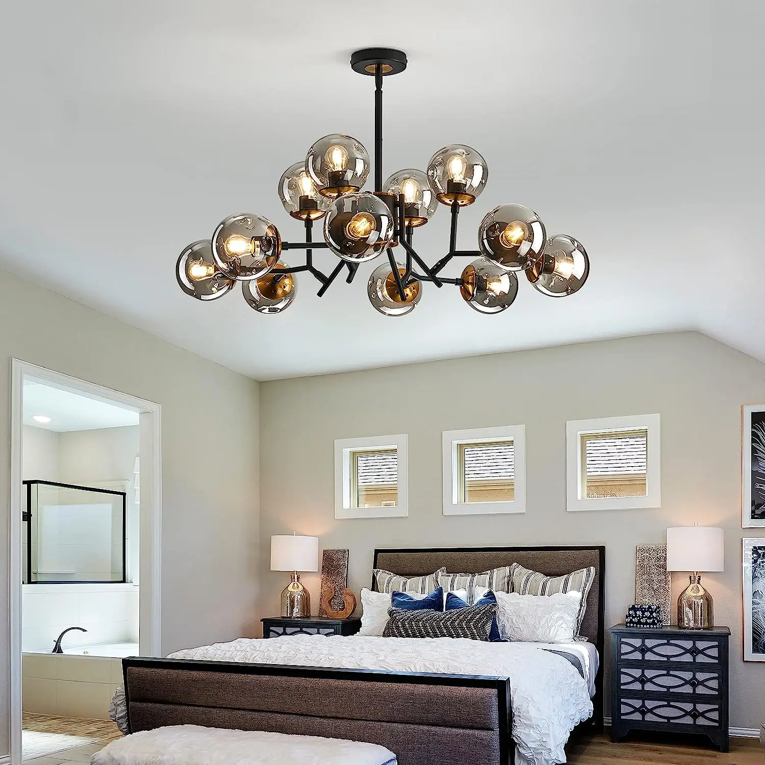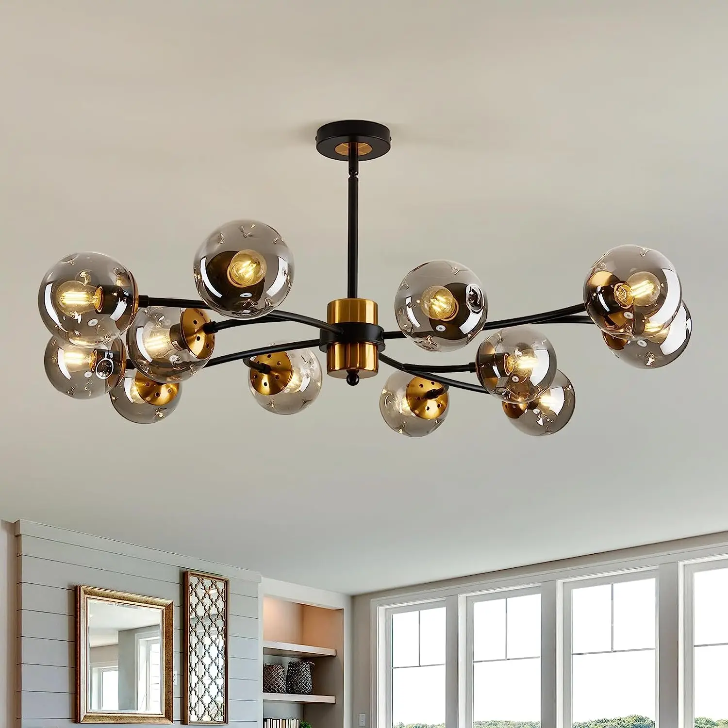 Modern Sputnik Chandelier Mid Century Large Rustic Flush Mount Ceiling Height Adjustable Vintage Hanging Pendant Light Fixture