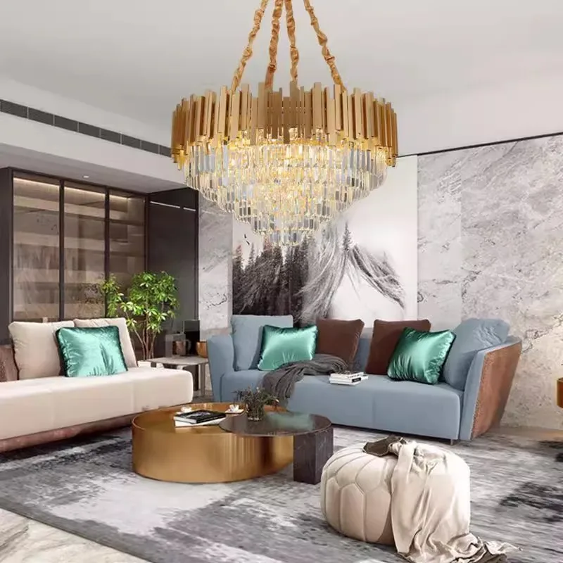 Zeal Lighting Hotel Lobby Hall Decorative Large Hanging Light Customized Long Gold Crystal Elegant Chandelier
