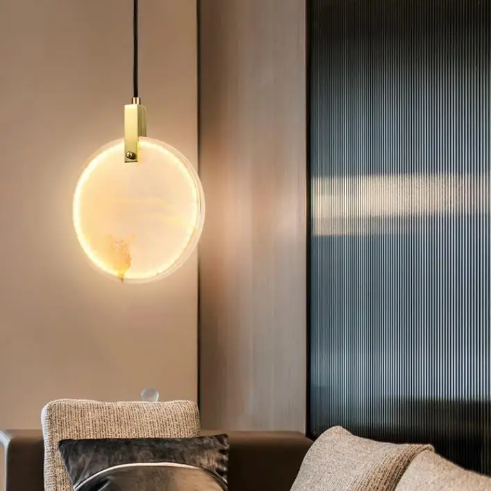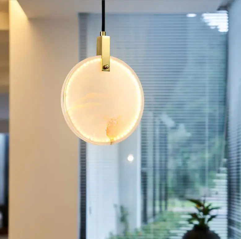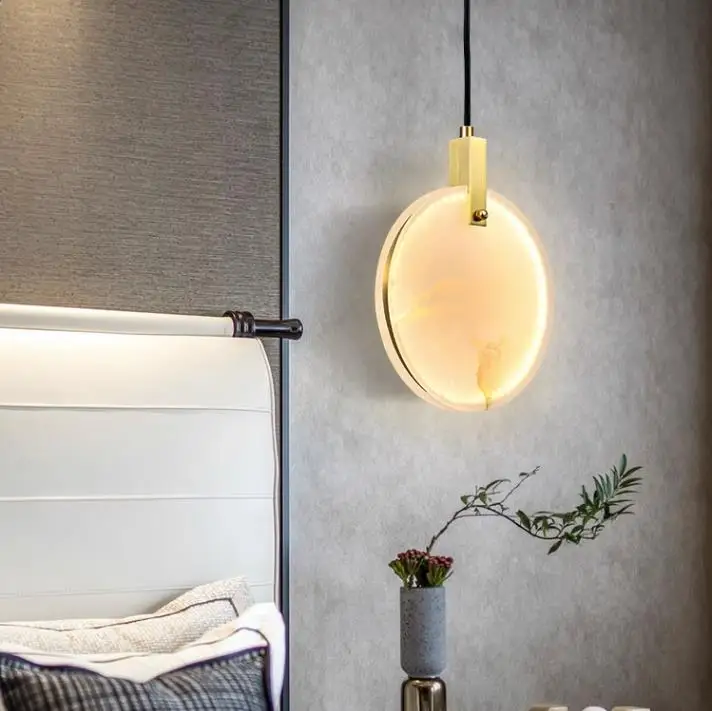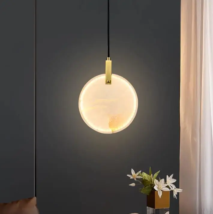 Modern Simple Natural Marble Chandelier All-Copper with Personality for Dining Room Bedroom Study or Villa