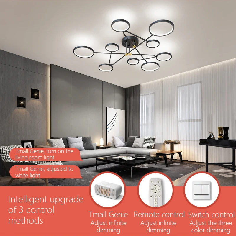 Fashionable Multi-Head Indoor LED Ceiling Pendant Light for Living Room Bedroom Study Warm Romantic Remote Control