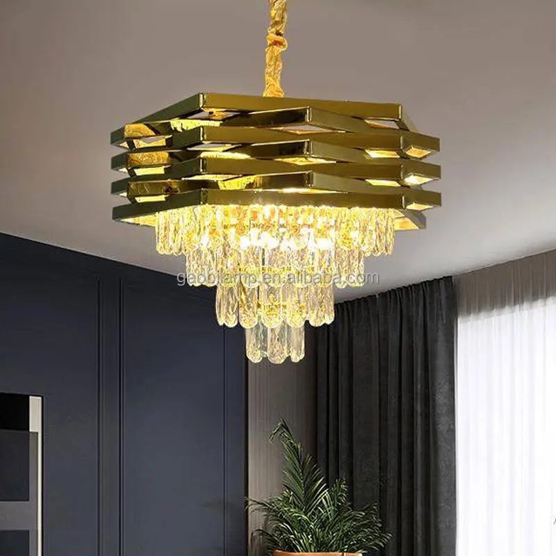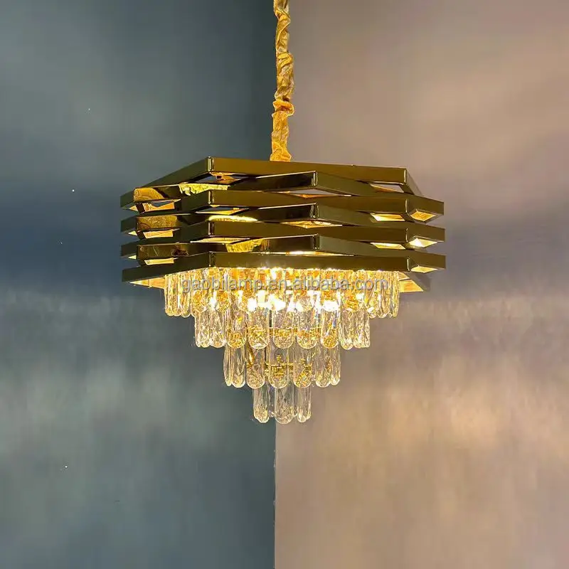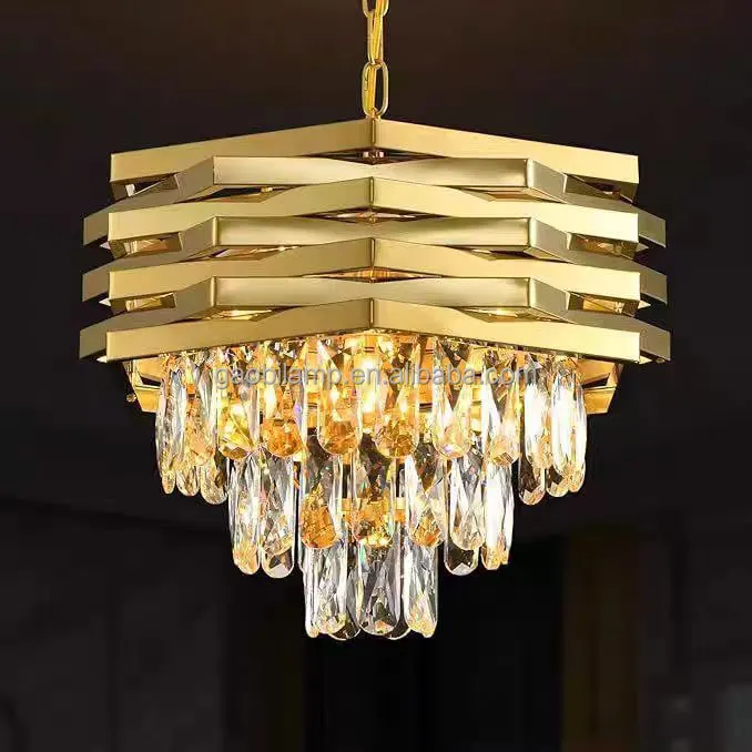 Nordic Modern Restaurant Dining Table Pendant Lights Gold Crystal Chandelier with Luxury Design Middle Size Hanging Installation