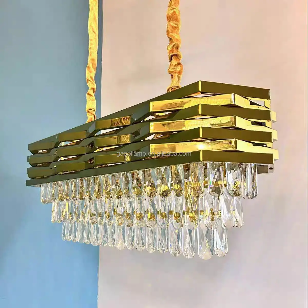 Zeal Lighting Hotel Lobby Hall Decorative Large Hanging Light Customized Long Gold Crystal Elegant Chandelier