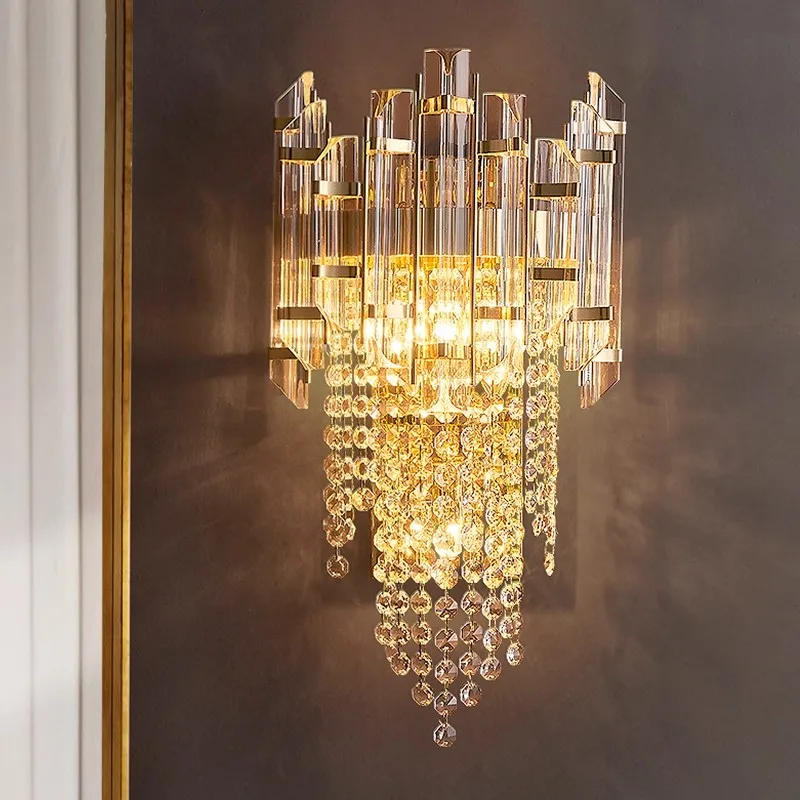Post-Modern Light Luxury Crystal Wall Lamp LED Iron Body Bedroom Bedside Lamp for Living Room