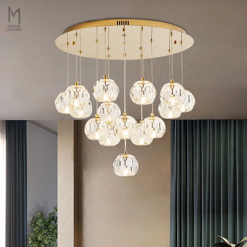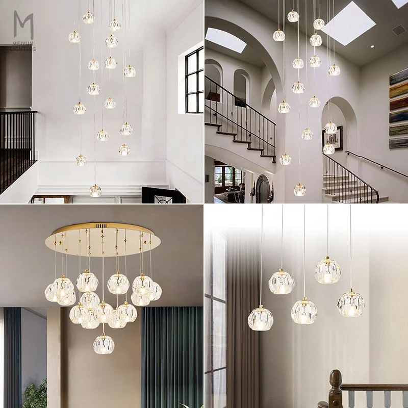Staircase Led Crystal Chandeliers Pendant Lights Gold
