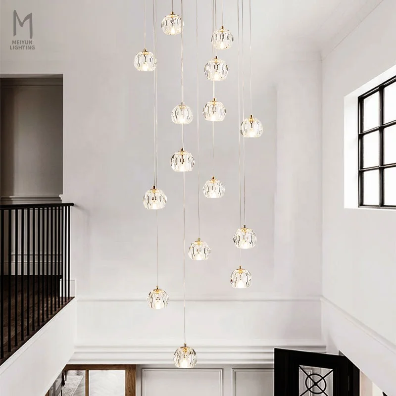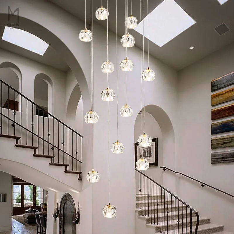 Zeal Lighting Long Stairwell Hanging Pendant Light Staircase Villa Duplex Stair High Ceiling Crystal Chandelier