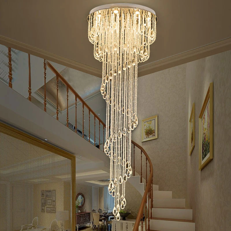 Zeal Lighting Long Stairwell Hanging Pendant Light Staircase Villa Duplex Stair High Ceiling Crystal Chandelier