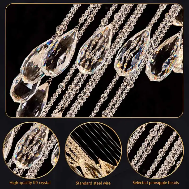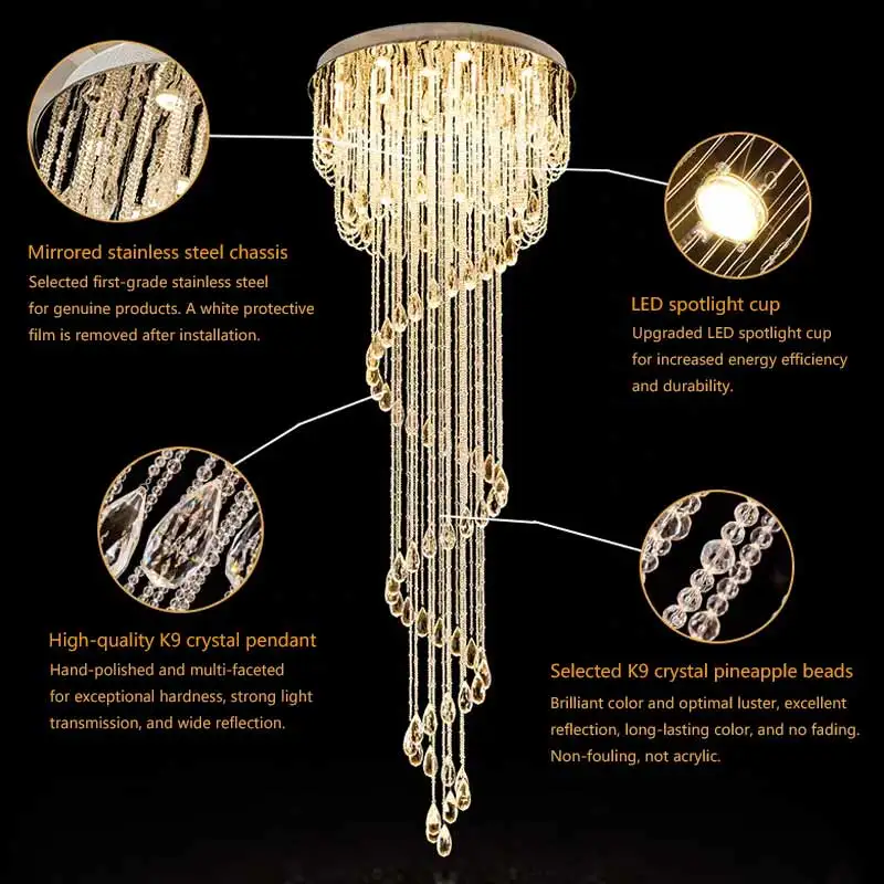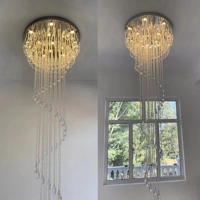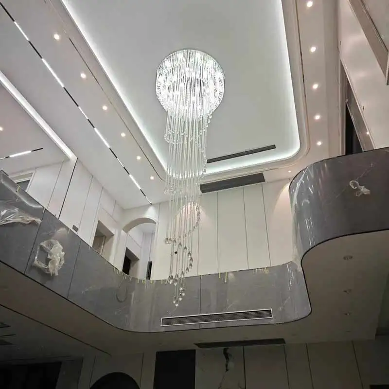 Big Nordic Modern High Ceiling Hotel Pendant Light Lobby Hanging Large Stair Cristal Led Luxury Crystal Chandelier