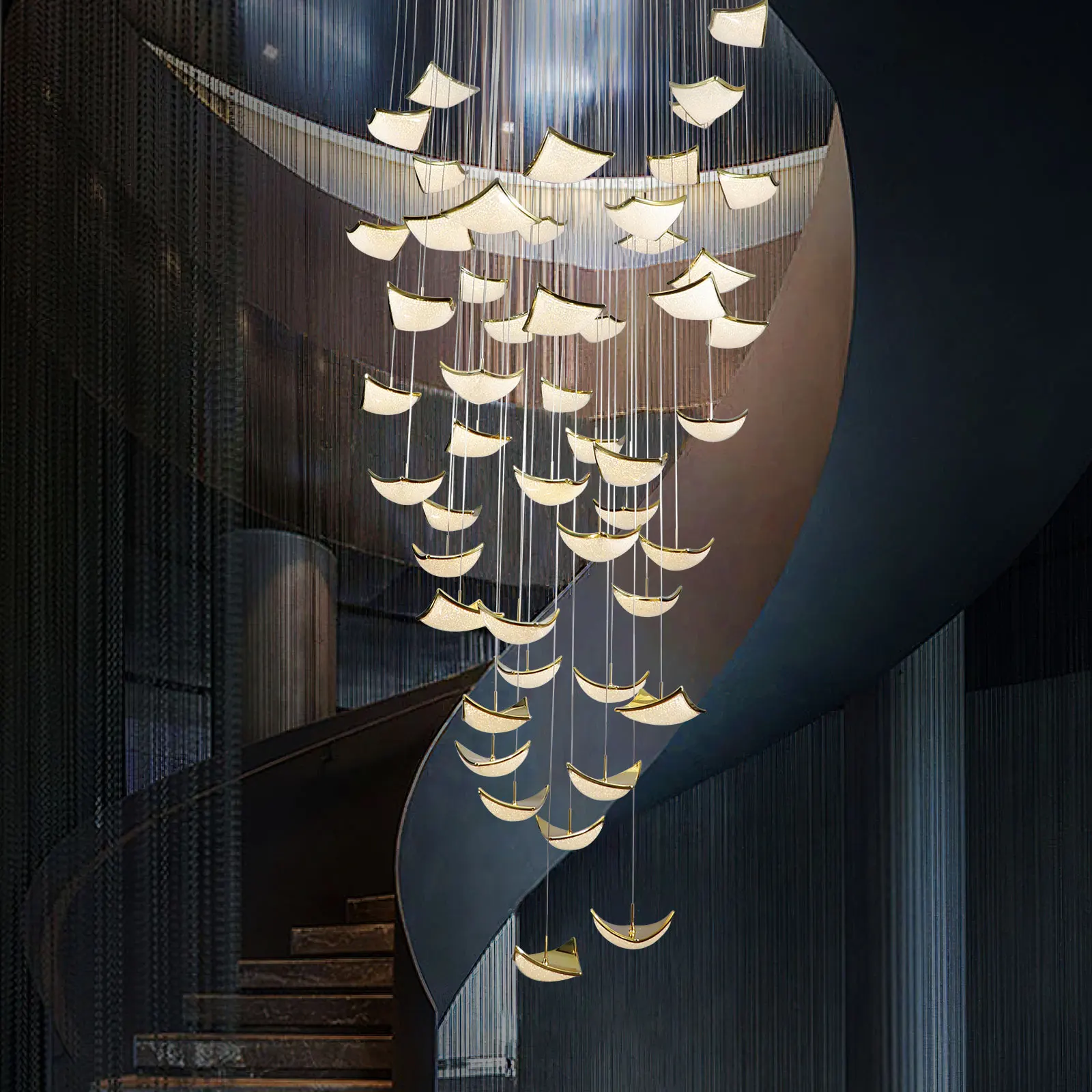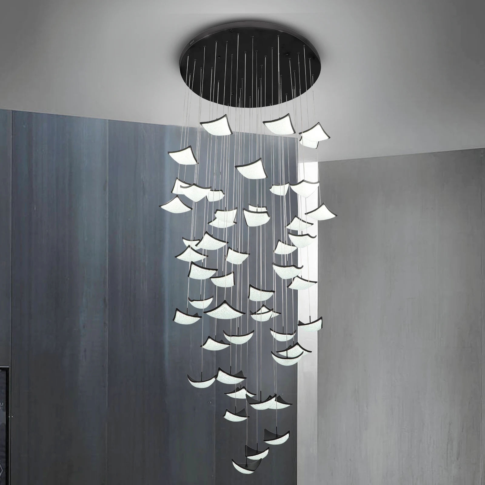 Modern Led Chandelier Staircase Height Adjustable Spiral Raindrop Dimmable Ceiling Pendant Light for Entryway Foyer Living Room