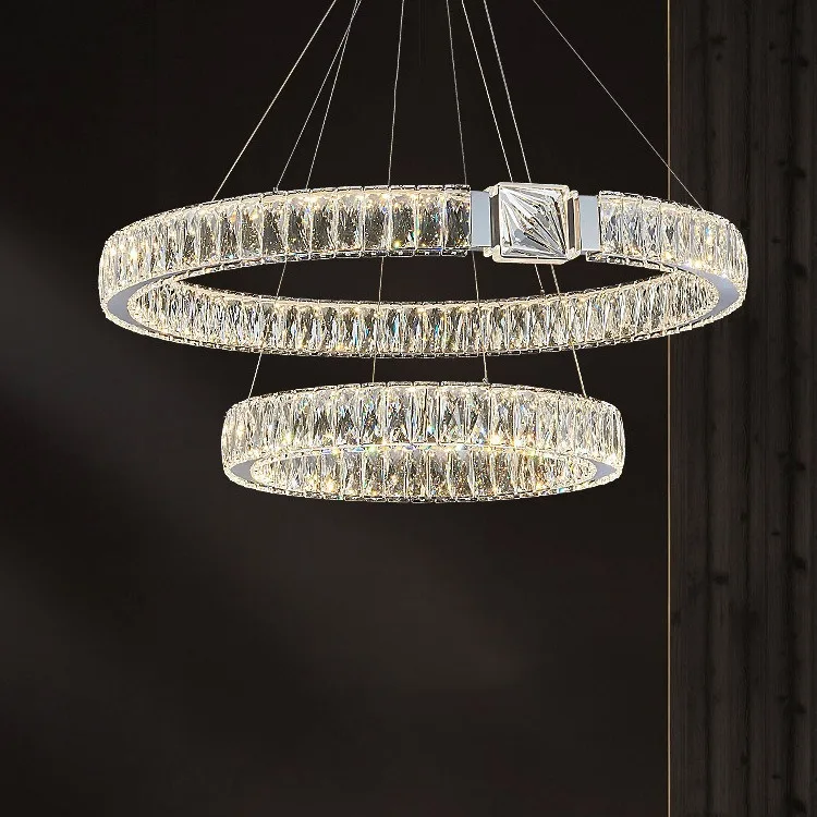 Modern Home Chandelier Lighting Hotel Led Ring Circle Crystal Pendant Light for Living Room