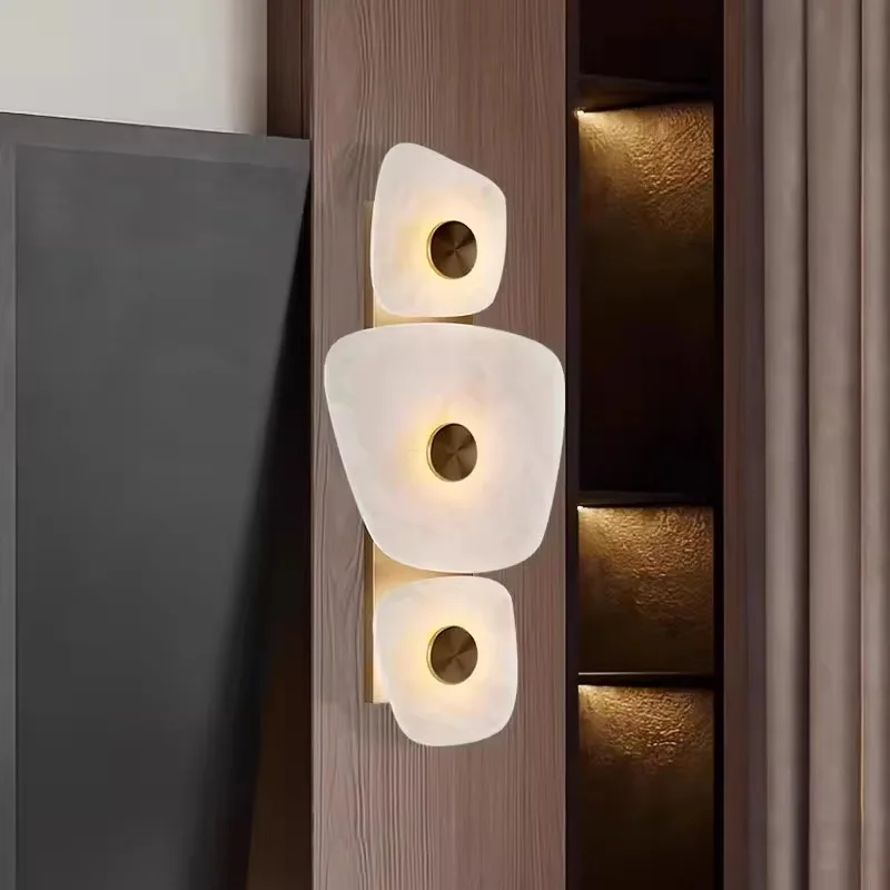 High-End Natural Marble Copper Spanish Light Wall Lamp for Luxury Living Room Corridor Bedroom Home Office Background Wall