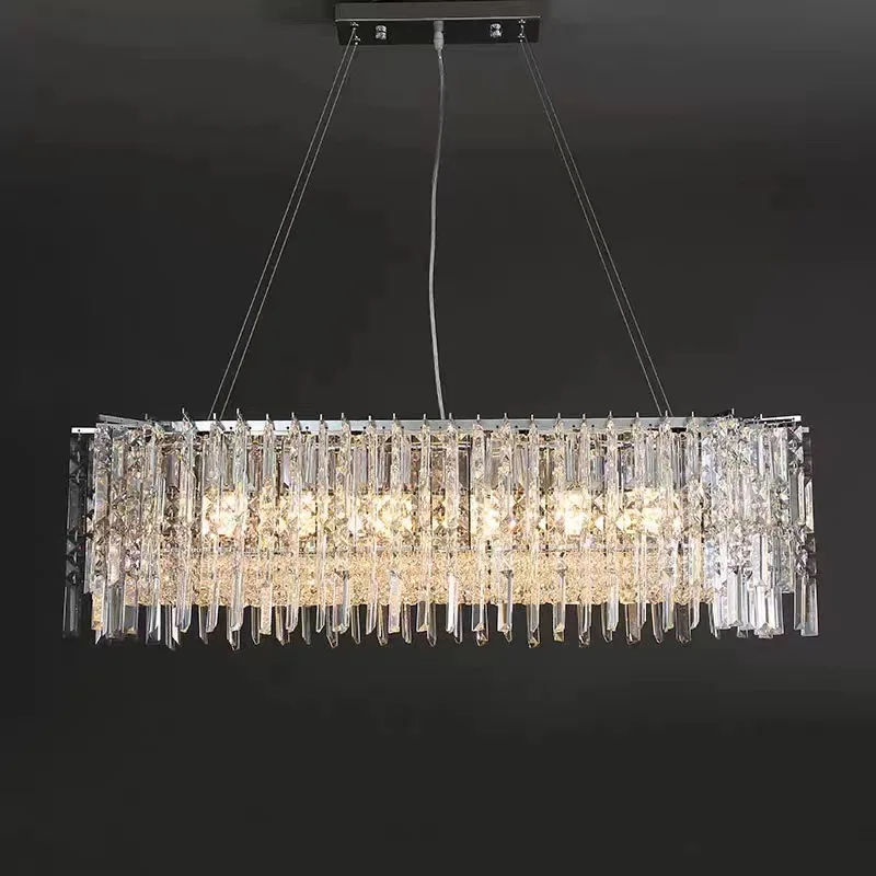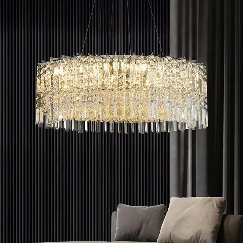 Hotel Villa Hanging Pendant Lights Design Silver Rectangular Round Led Crystal Chandelier