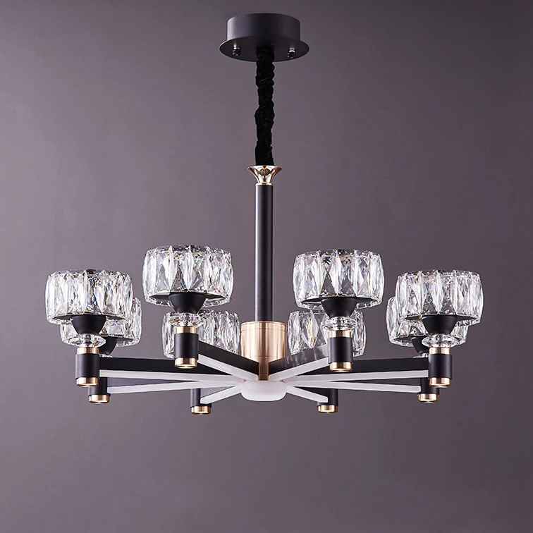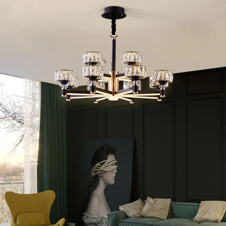 Nordic 6 Arms Lighting Ceiling Lamp Dining Room Hotel 6 Arm Lighting Black Chandelier with Crystal