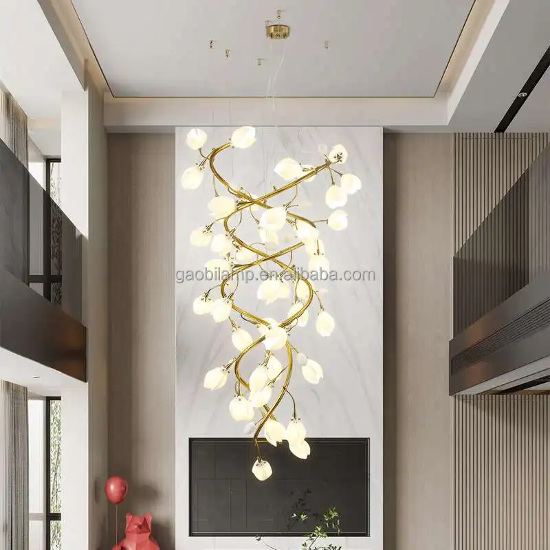 Zeal Lighting Long Stairwell Hanging Pendant Light Staircase Villa Duplex Stair High Ceiling Crystal Chandelier