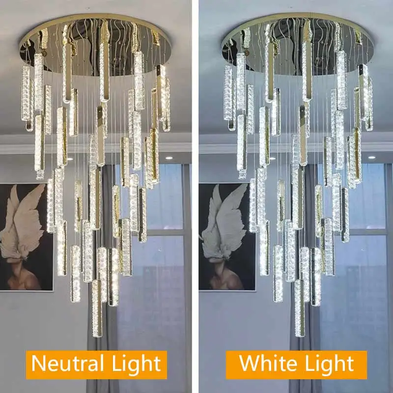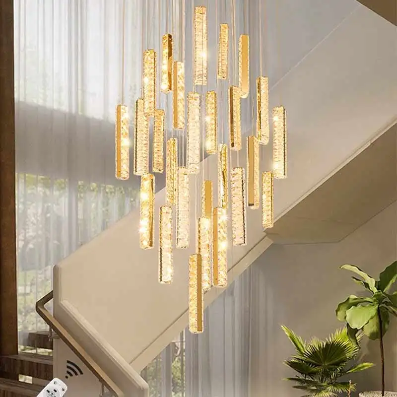 Zeal Lighting Long Stairwell Hanging Pendant Light Staircase Villa Duplex Stair High Ceiling Crystal Chandelier