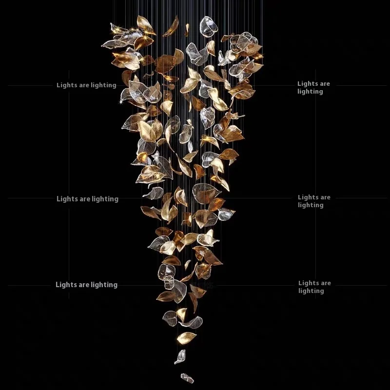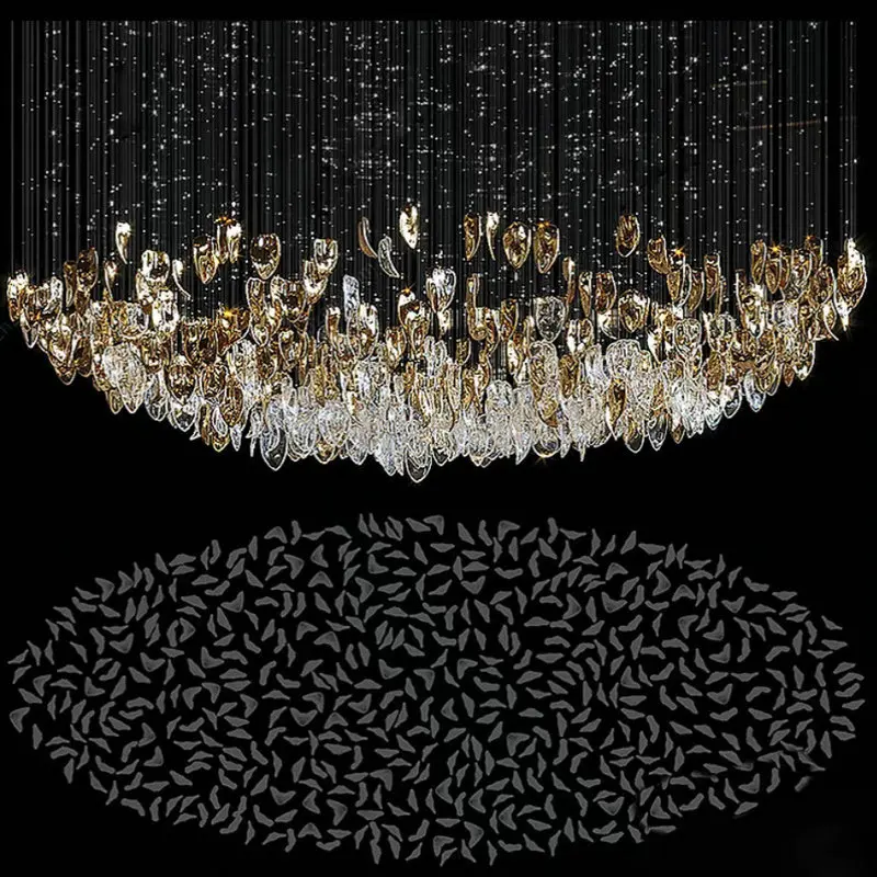 Handmade Feather Leaf Design Sales Department Engineering Pendant Light Custom-Size Hotel Exhibition Hall Glass Chandelier