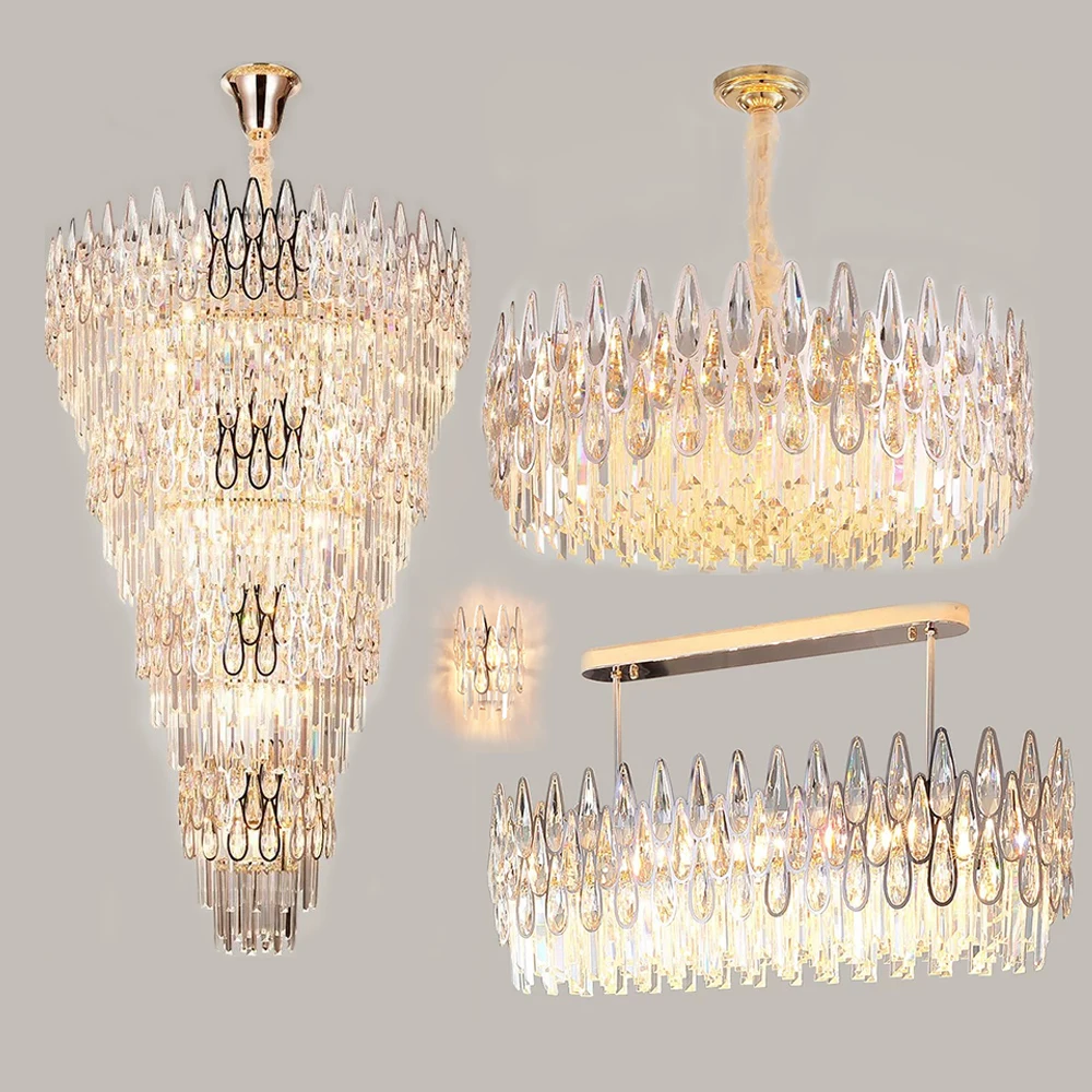 Modern Design Decoration Pendant Light Luxury Stainless Steel Crystal Chandeliers for Living Room
