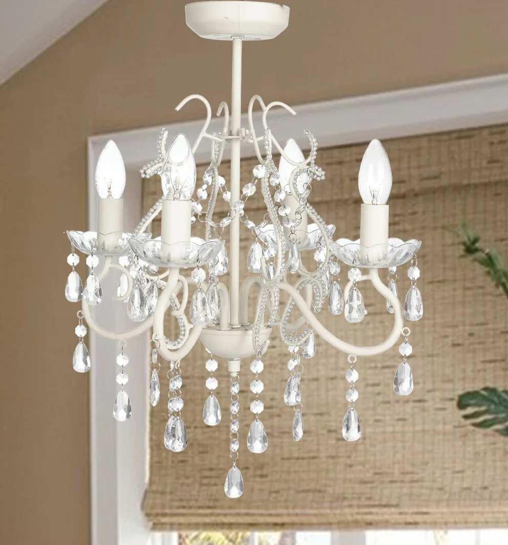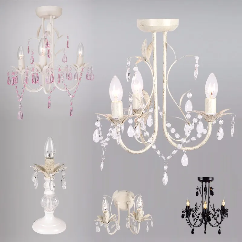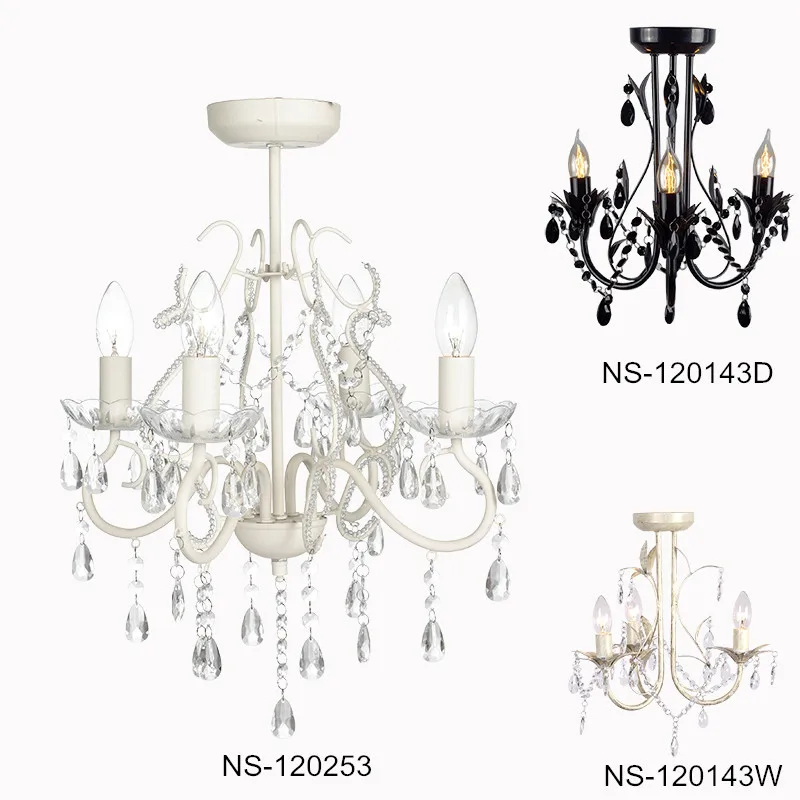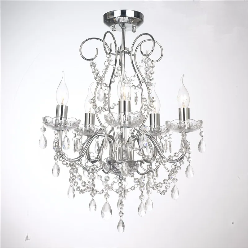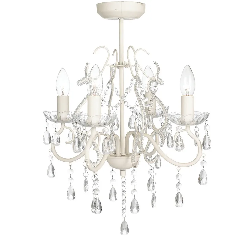 Shabby Chic Five Way Semi Flush Ceiling Pendant Chandelier Light Acrylic Droplets