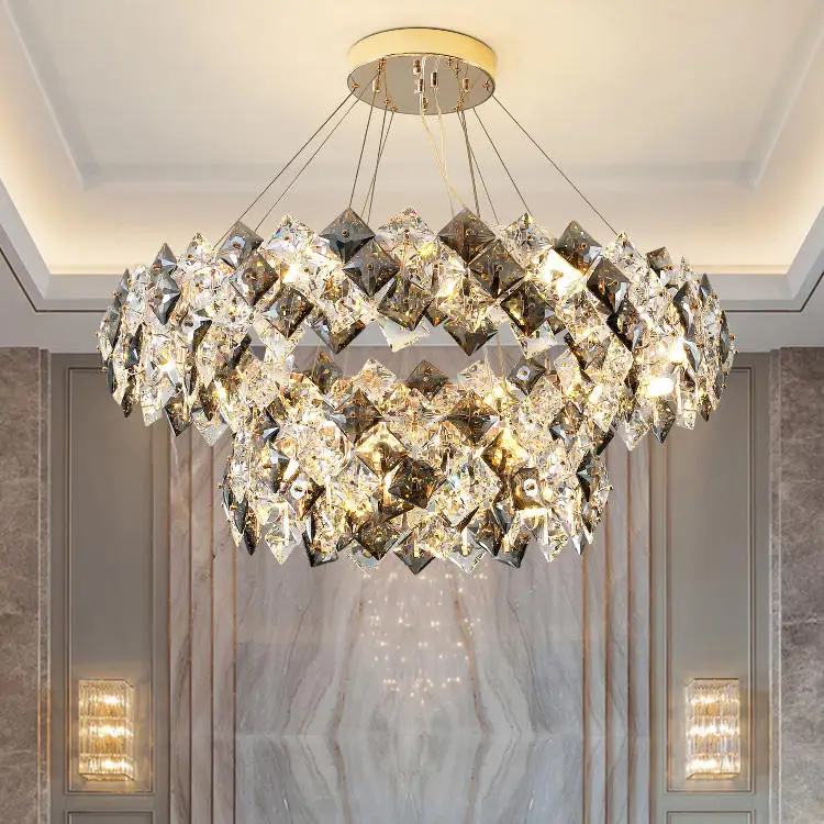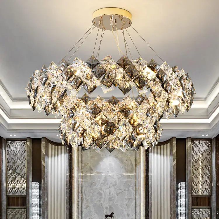 Zea Lighting Home Decorative Modern Pendant Light Smoke Grey K9 Crystal Chandelier for Dinning Room