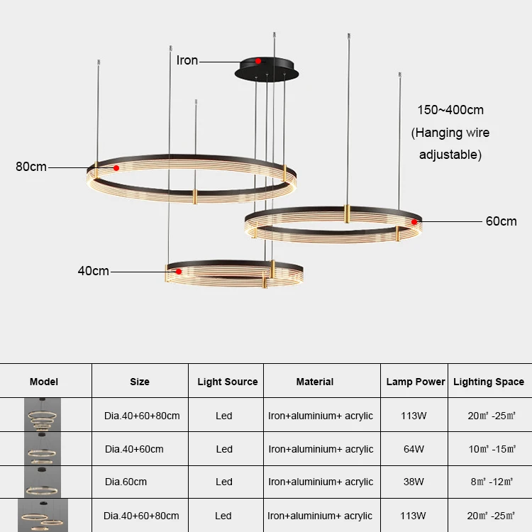 Nordic Ceiling Lighting Chandelier for Living Room Modern Luxury Led Round 3 Ring Dimmable Chandelier Ceiling Pendant Light