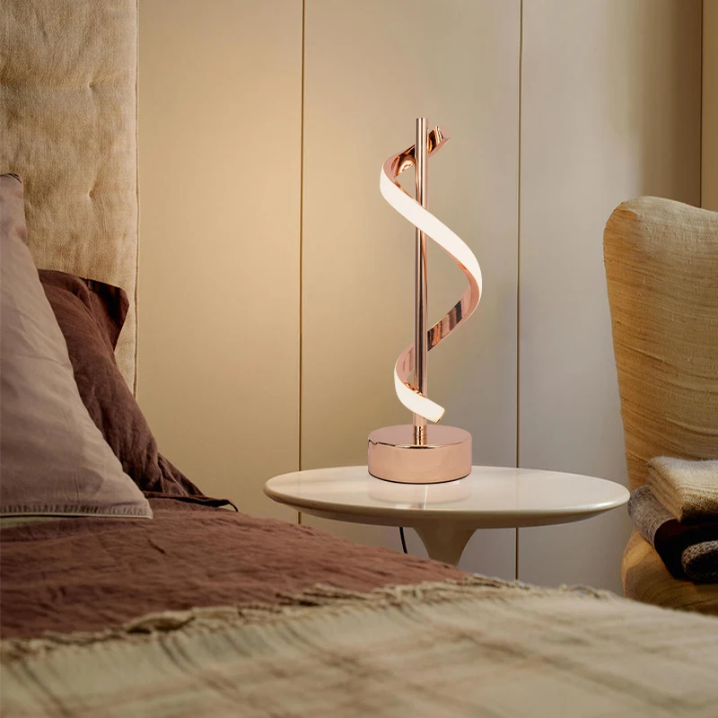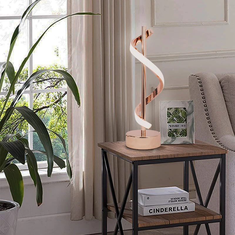 Minimalist Contemporary LED Spiral Table Lamp Rose Gold Aluminum 12W Lamp for Bedroom